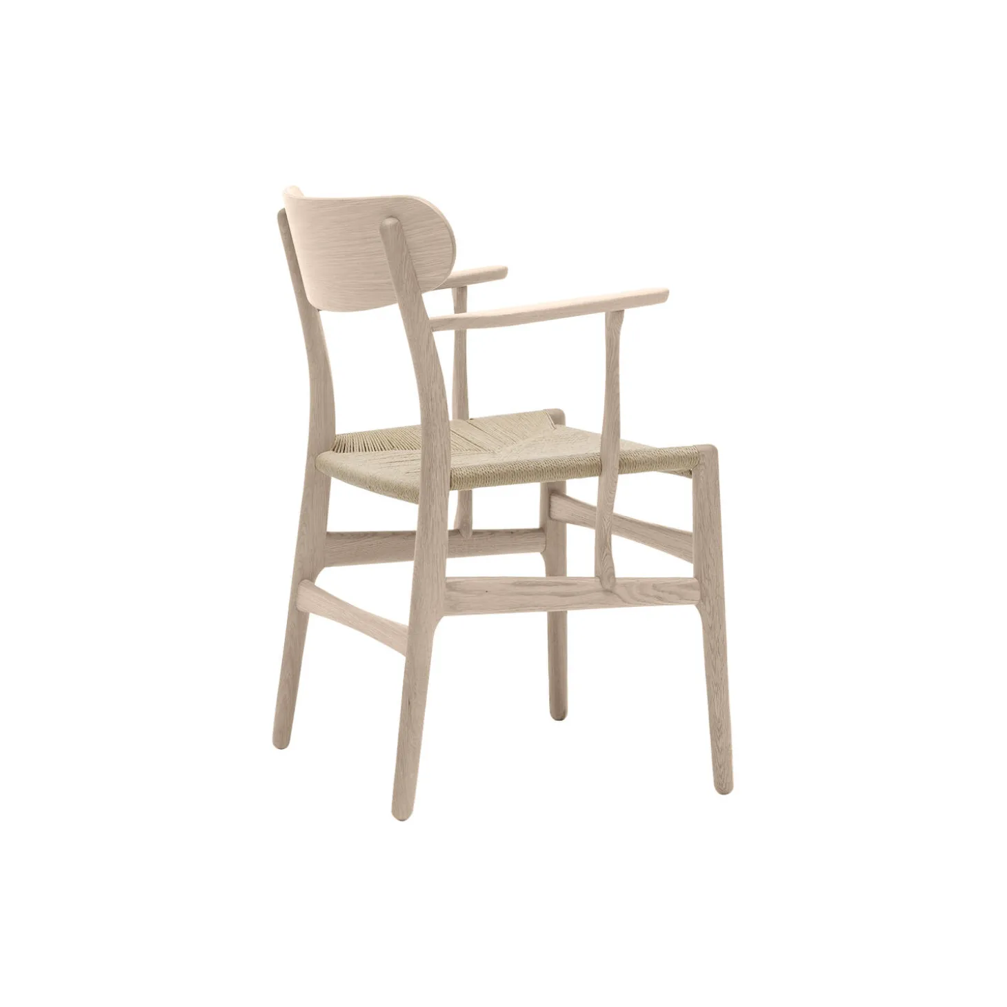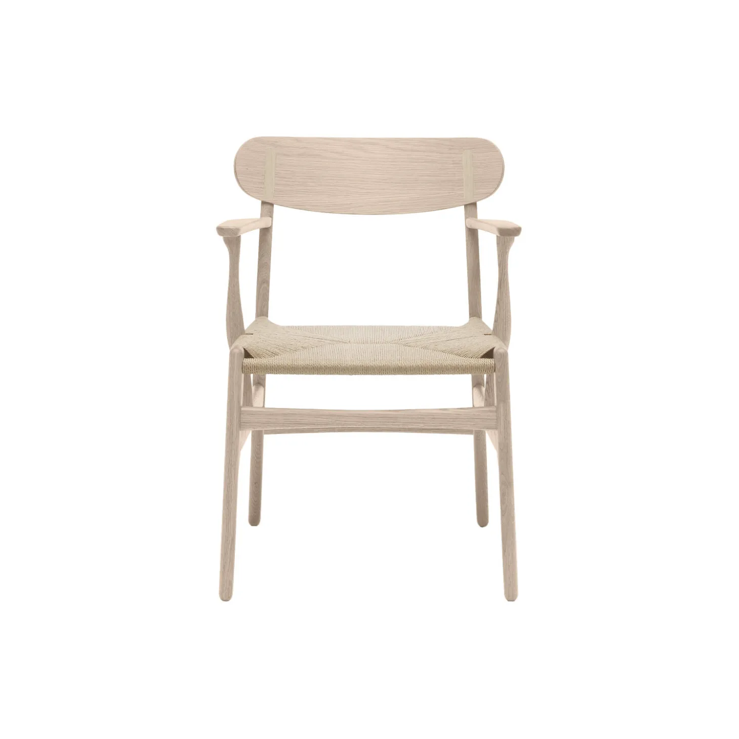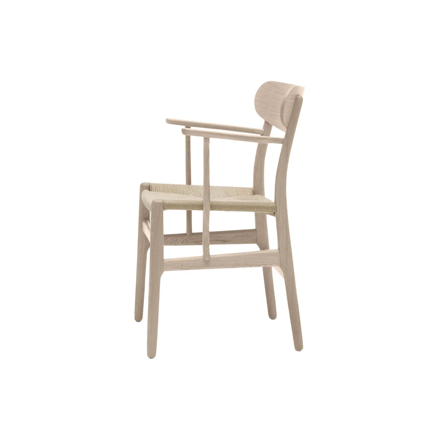 CH26 spisebordsstol i sæbebehandlet eg med sæde i papirgarn fra Carl Hansen & Søn. Farve: sæbebehandlet eg/natur. Mål: H: 79 x B: 59,2 x D: 52 cm. Siddehøjde: 44,5 cm. Design: Hans J. Wegner.