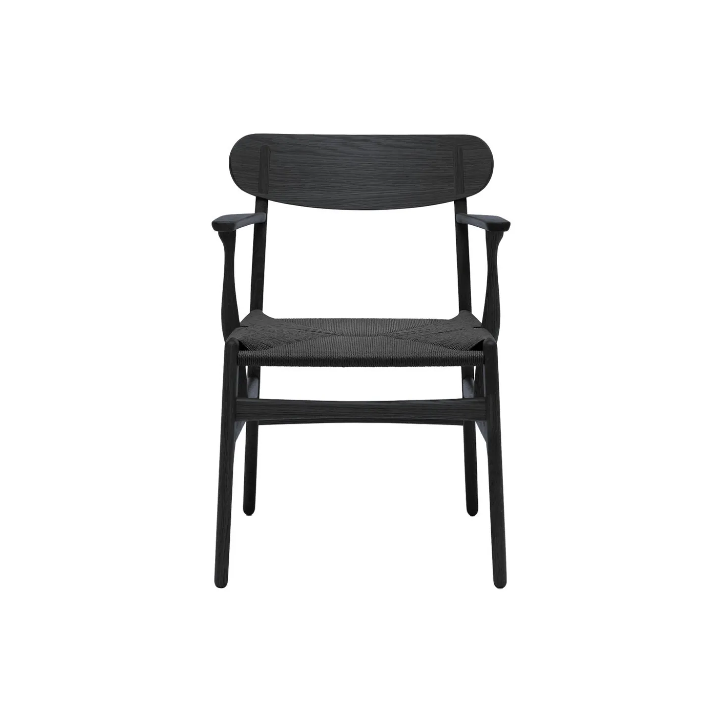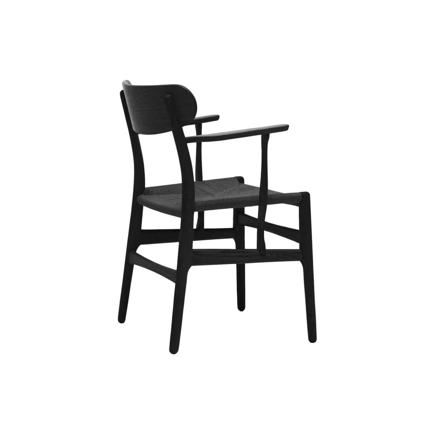 CH26 spisebordsstol i sortlakeret eg med sæde i papirgarn fra Carl Hansen & Søn. Farve: sortlakeret eg/sort. Mål: H: 79,8 x B: 59,2 x D: 51,9 cm. Siddehøjde: 44,5 cm. Design: Hans J. Wegner.