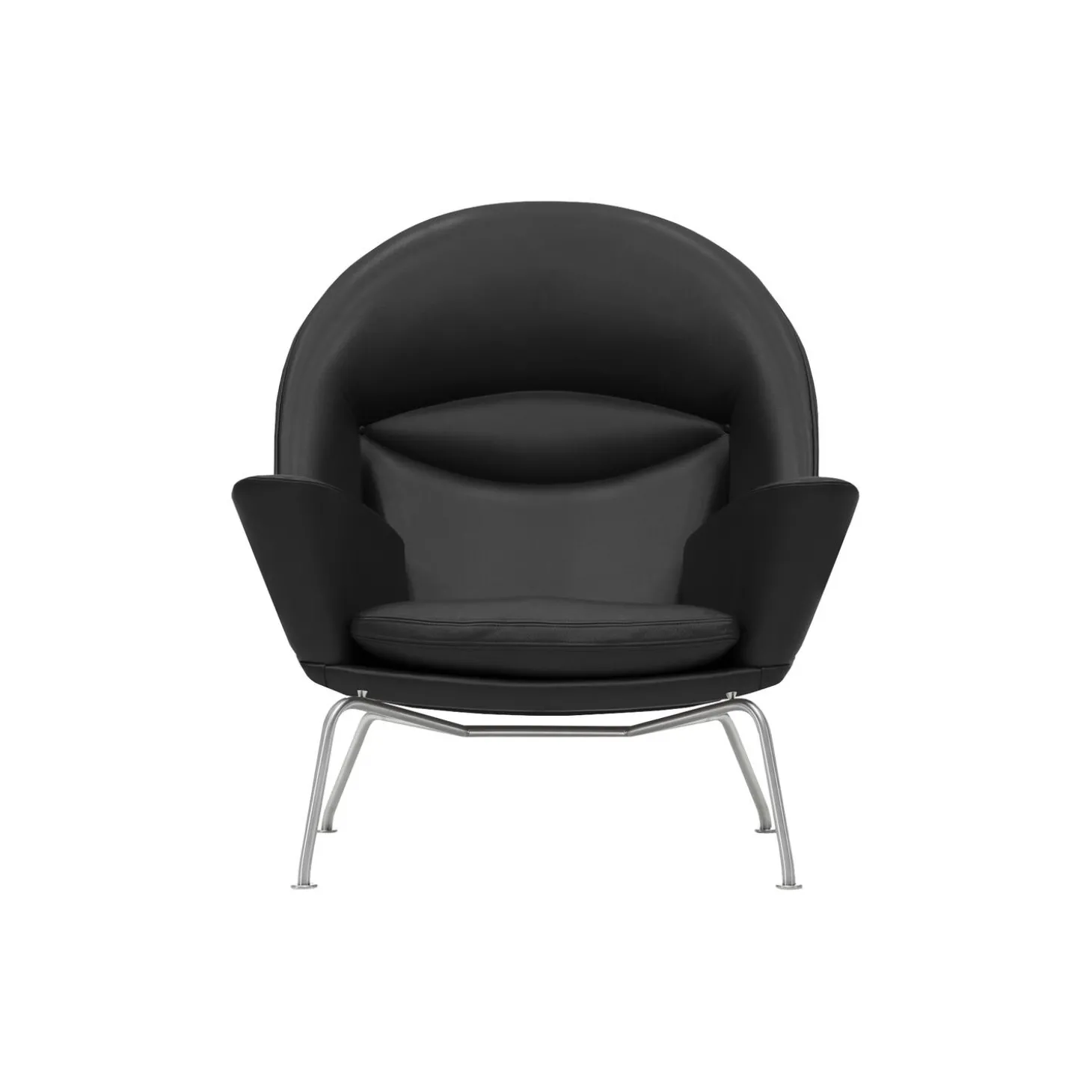 CH468 Oculus Chair loungestol med polstring i Sif 98 anilinlæder og stel i rustfrit stål fra Carl Hansen & Søn. Farve: sort/rustfrit stål. Mål: H: 105 x B: 94 x D: 94 cm. Siddehøjde: 40 cm. Design: Hans J. Wegner.