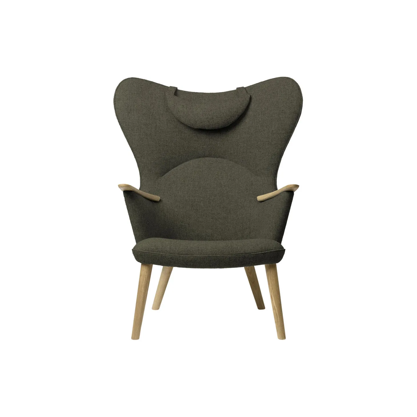 CH78 Mama Bear loungestol med polstring i Fiord 961 af Kvadrat og stel i sæbebehandlet eg fra Carl Hansen & Søn. Farve: green. Mål: H: 106 x B: 84 x D: 80 cm. Siddehøjde: 40 cm. Design: Hans J. Wegner. Nakkestøtte tilkøbes separat.