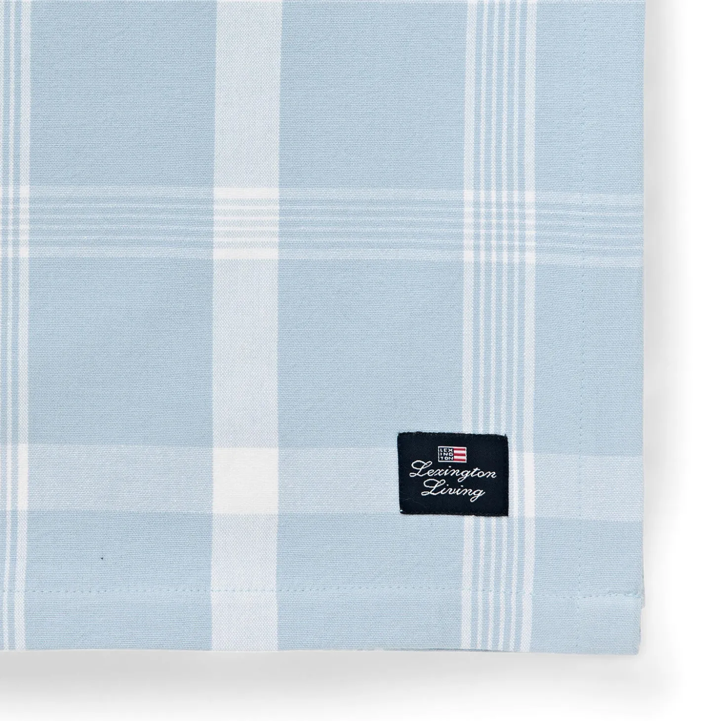 Pift din middagsoplevelse op med denne smukt forarbejdede himmelblå oxforddug i bomuld med tidløse hvide tern. Denne bløde og holdbare dug er lavet af 100 % genanvendt økologisk bomuld og er en perfekt blanding af bæredygtighed og klassisk design. Den har en raffineret foldet kant og et diskret logomærke i hjørnet, og den tilfører underspillet elegance til enhver borddækning. Den er certificeret af Oeko-Tex og produceret på en Green Factory, så den er et ansvarligt valg til dit hjem. Fås i flere størrelser, så de passer til dine behov. Lavet i Indien.