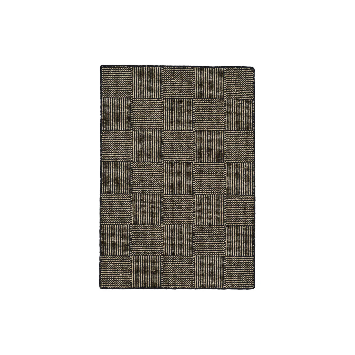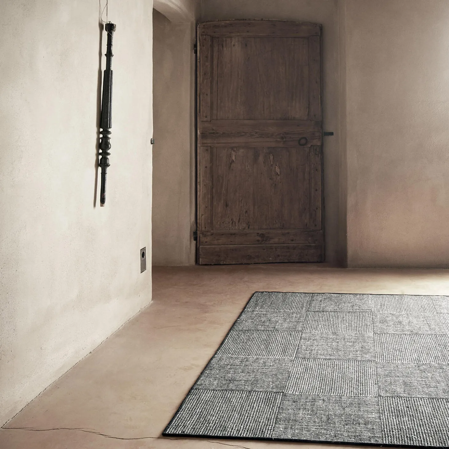 A chequerboard hand-woven rug from Linie Design. As its name suggests, Chess comprises squares of contrasting vertical and horizontal stripes, creating a symmetrical chequerboard pattern that is both harmonious and visually appealing. Made from a blend of wool and linen, which has an enduring quality and gives the yarn a natural, rustic expression. Hand-crafted by Linie Design’s artisan weavers, designed by Kim Naver.