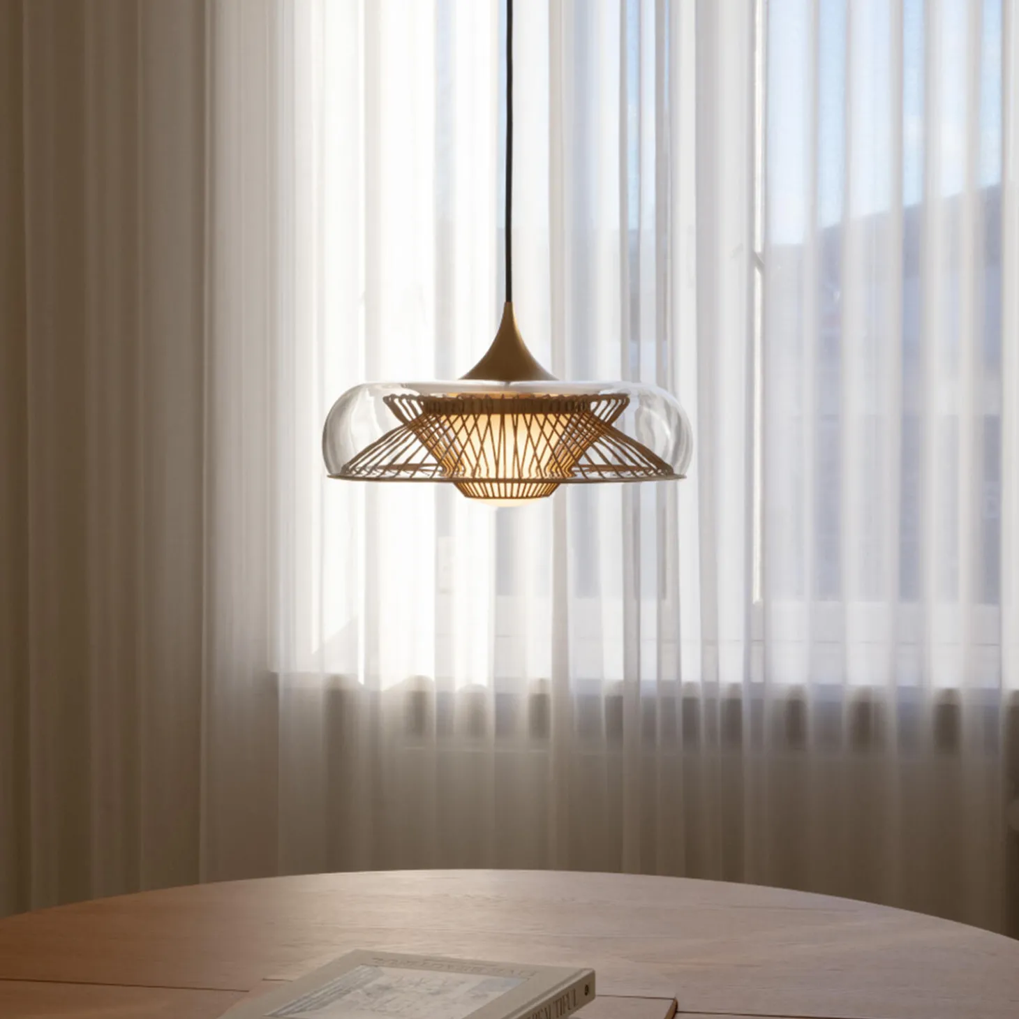 The Chordis lampshade brings a timeless blend of glass and brass to interiors, creating an airy, almost invisible feel balanced by the warm glow of its polished brass accents. Its delicate design reflects a meticulous attention to detail, combining the timeless beauty of curved glass with the lyrical grace of piano strings. Perfectly suited for dining areas and living spaces, the Chordis lampshade is both a functional light source and a decorative centrepiece. Its understated sophistication ensures it complements a variety of interiors, adding harmony and elegance to any setting.