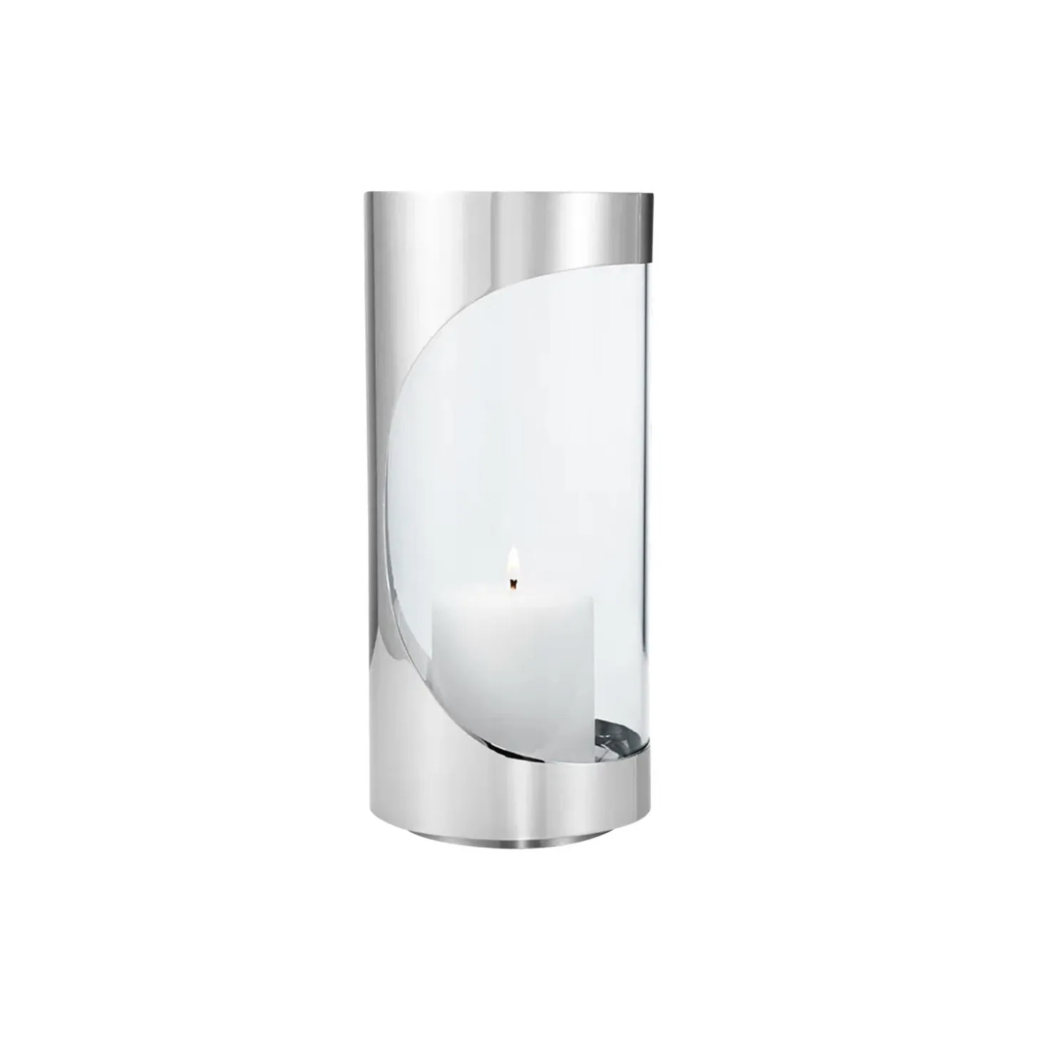 Chrome Contours kollektionen er designet af Maria Berntsen og byder på elegante hurricanes til levende lys. Lysestagerne har et minimalistisk udtryk med karakter, og designet er både tidløst og unikt. Lysestagerne giver et smukt lys udendørs, og de er perfekte til at skabe en varm og hyggelig stemning under åben himmel. Denne lysestage er til bloklys, som er op til 60 mm i diameter, og den passer også til lys fra Georg Jensen. Lysestagen har en praktisk bund, som kan fjernes for nem rengøring.
