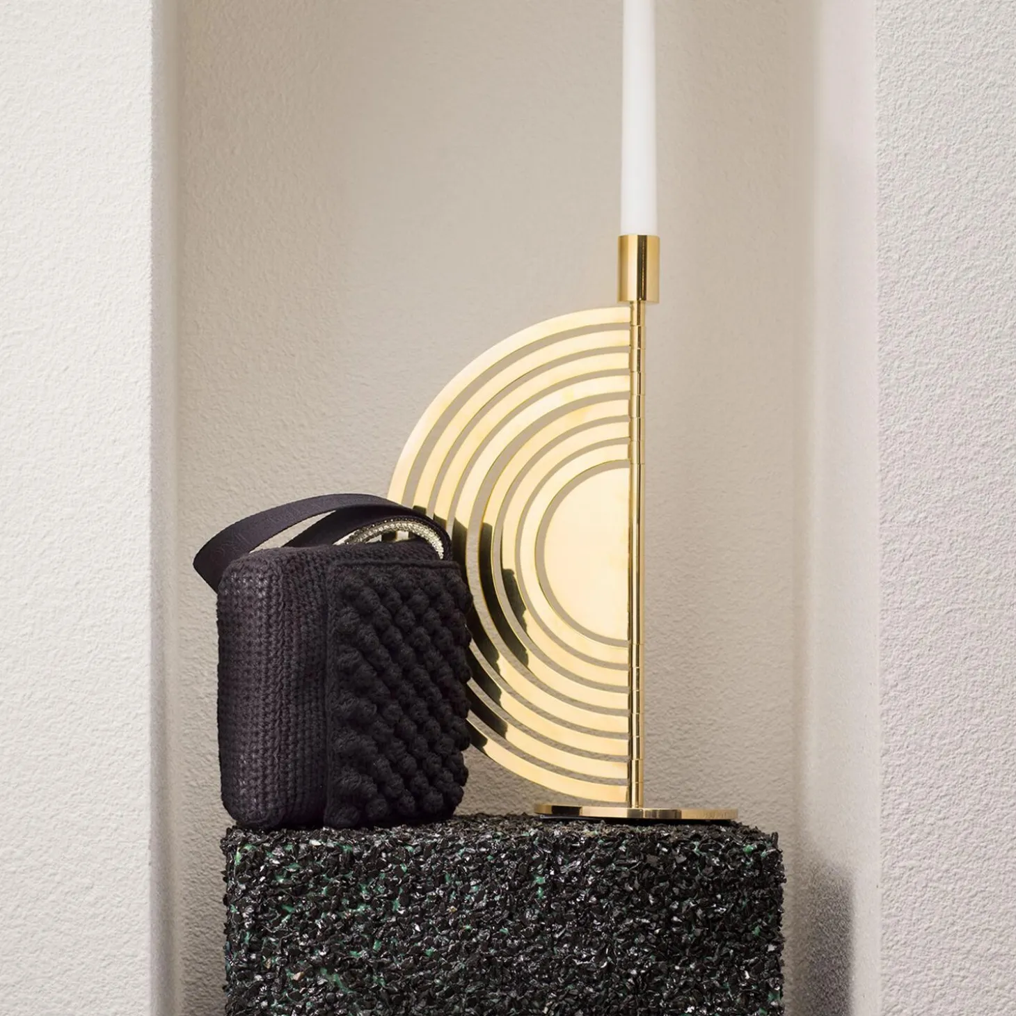 Cirkus are playful candlesticks consisting of one or multiple sections of mobile semicircles. They are made of brass but also availble with a black finish. Cirkus comes in three sizes, with the largest piece being a floor candlestick. By turning the semicircles, different expressions are created, which is part of Eva Schildt’s hallmark. The classic candlestick Constella is another typical example of Eva’s design that can be changed, creating a variety of different expressions. It does not become static, but instead playful. The playfulness together with its form, is what gave Cirkus its name.