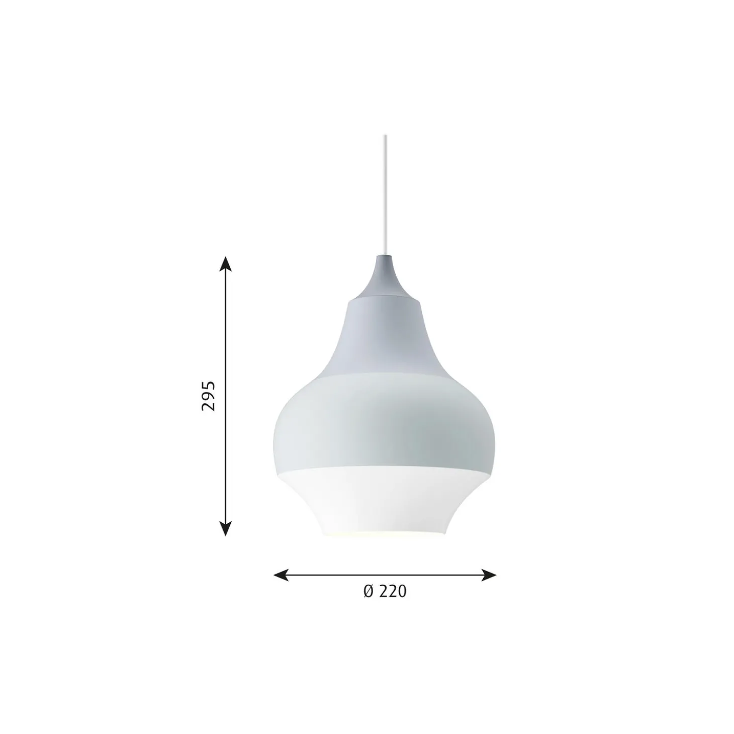 Cirque pendel i vådlakeret optrukket aluminium fra Louis Poulsen. Farve: grå. Mål: H: 18,9 x Ø 15 cm. Lyskilde: 25W E27. Design: Clara von Zweigbergk.
