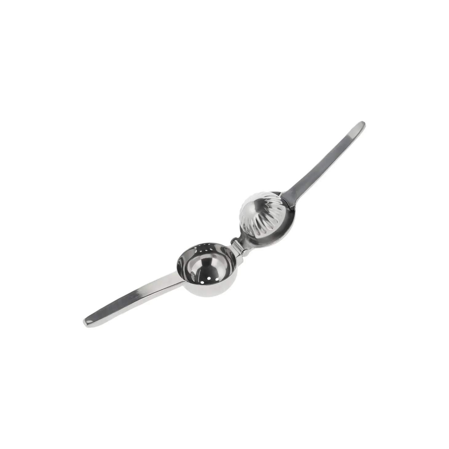 Den klassiske citruspresser af rustfrit stål er enkel at anvende: Citrusfrugten halveres og lægges over hullerne med frugtkødet nedad og skrællen opad. På den måde presses frugtens inderside udad, når du presser håndtagene sammen, så saften løber ud gennem hullerne, mens kerner og frugtkød bliver i presseren. Pres direkte ned i maden, drinken og dressingen og undgå spild af saft. Velegnet til limefrugter, citroner og små appelsiner. Længde 21 cm, indre diameter 6 cm. Vaskes i opvaskemaskine før første brug.