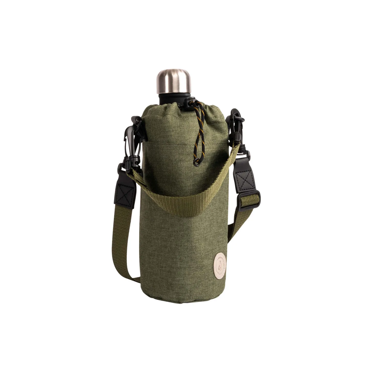 A smaller cooler bag made of rPET, recycled PET-bottles. Perfect to hang over the shoulder for the small picnic or an adventure in the park. Holds a 50 cl water bottle or a few soda cans. The bag has a beautiful green colour, the shoulder strap is adjustable and you close it with a drawcord.