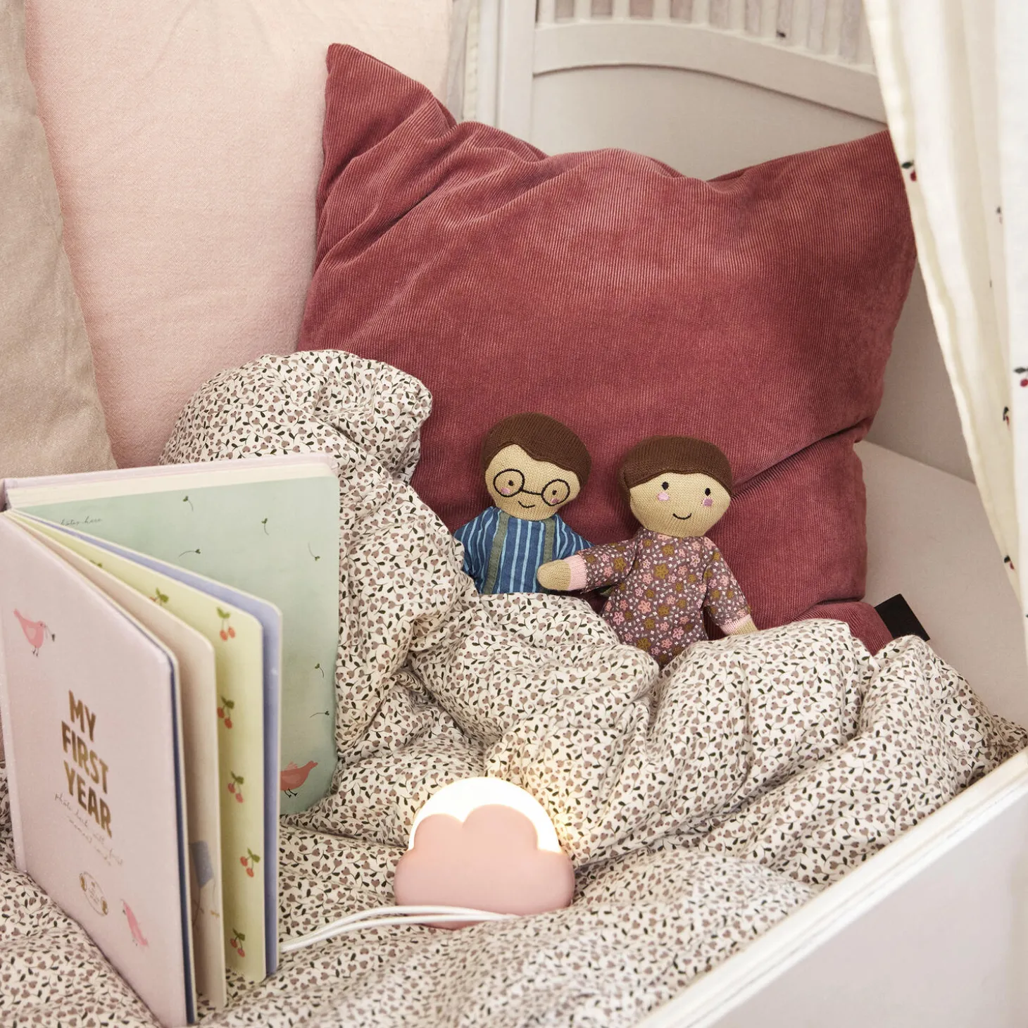 Cloudy er den mest bedårende lille LED-lampe. Den er perfekt til at hænge på tremmesengen, mens du vugger din baby i søvn. Tænd timerfunktionen, og den slukker automatisk efter 2 timer – eller forbliver blidt glødende hele natten. Og det er ikke det eneste, for den tilføjer også en dejlig dimension til dit puslebord. Cloudy har både varmt, koldt og rødt lys, så du kan skabe de ideelle rammer til enhver situation. Cloudy har 6 forskellige lysindstillinger. En ekstra positiv detalje er, at Cloudy ikke bliver varm, så du kan være rolig, selv hvis din lille giver den et kærligt klem. Lampen er PFAS-fri og indeholder rødt lys til amning om natten.