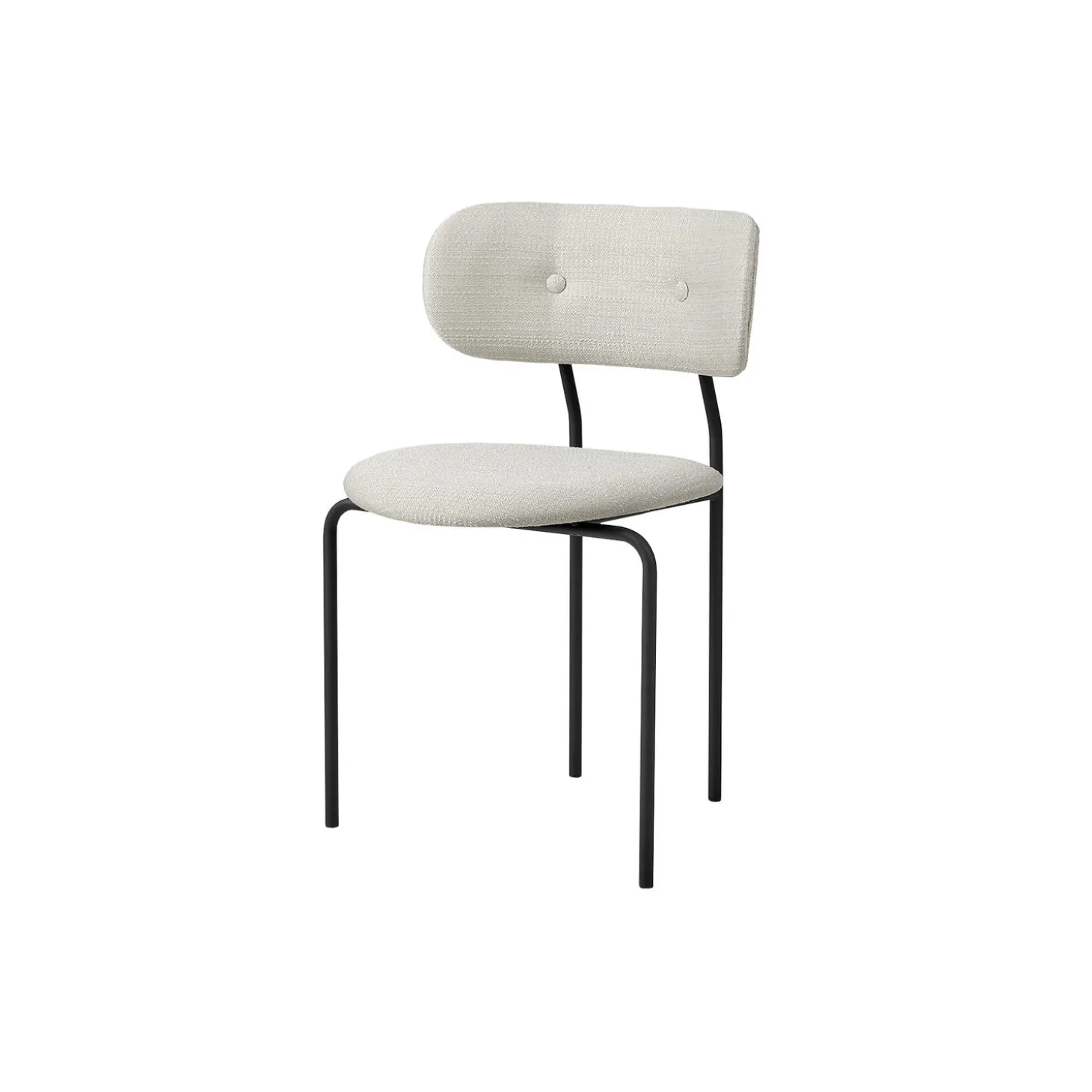 Coco Dining Chair fuldpolstret i Eero Special 106 tekstil af Dedar og stel i lakeret stål fra GUBI. Farve: Eero Special 106/black matt. Mål: H: 80 x B: 51 x D: 53 cm. Siddehøjde: 47 cm. Design: OEO Studio.
