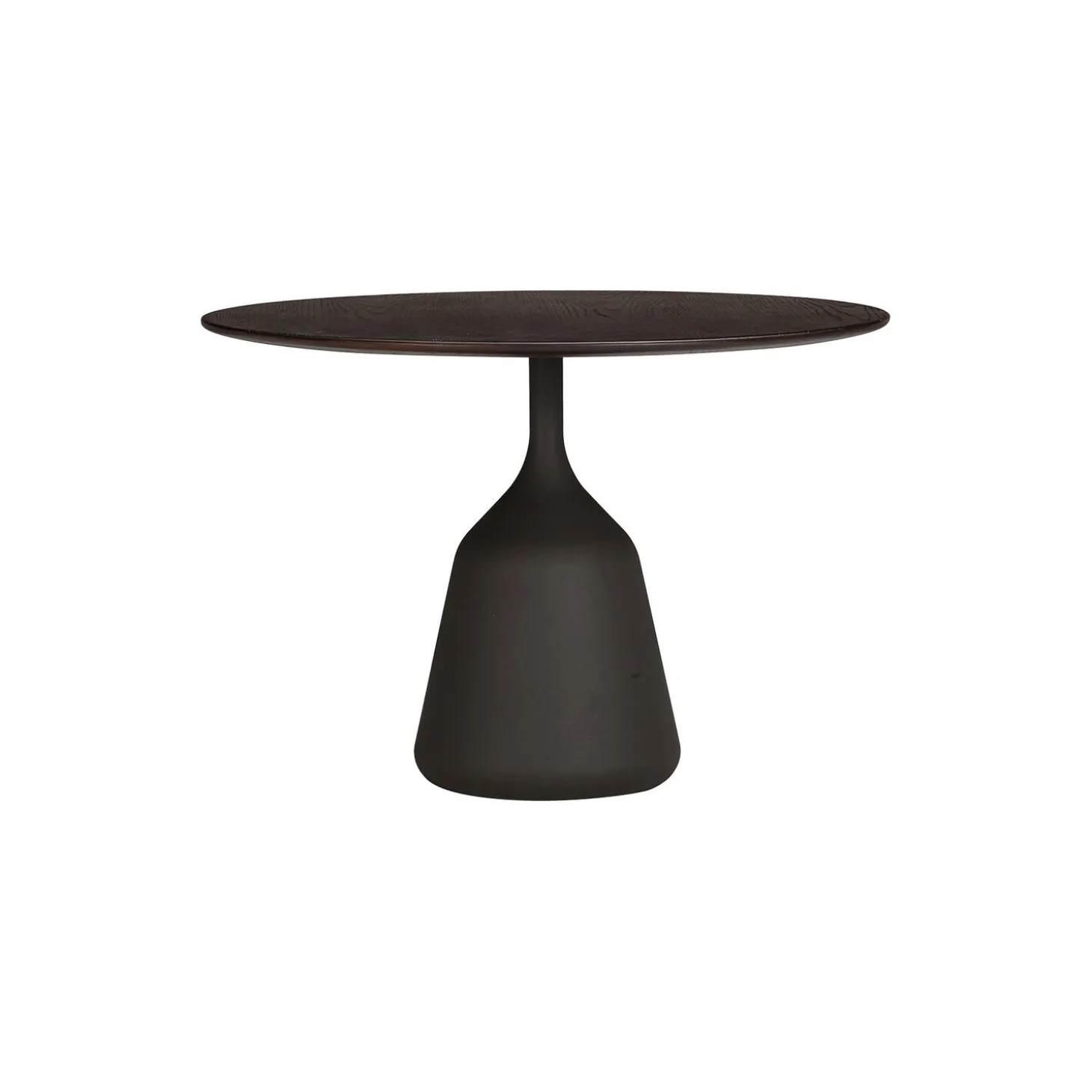 Coin Side Table med bordplade i mørkbejdset egetræsfinér og MDF samt stel i pulverlakeret støbt aluminium fra Wendelbo. Farve: dark oak. Mål: H: 40 x Ø 58 cm. Design: 365° North.