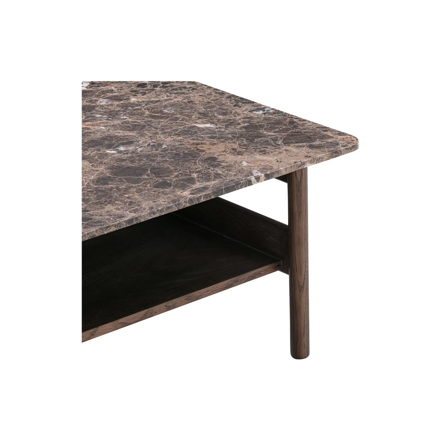 Collect sofabord med bordplade i Brown Emperador marmor og stel i bejdset eg fra Wendelbo. Farve: brown. Mål: H: 35 x L: 95 x B: 95 cm. Design: Jonas Wagell.