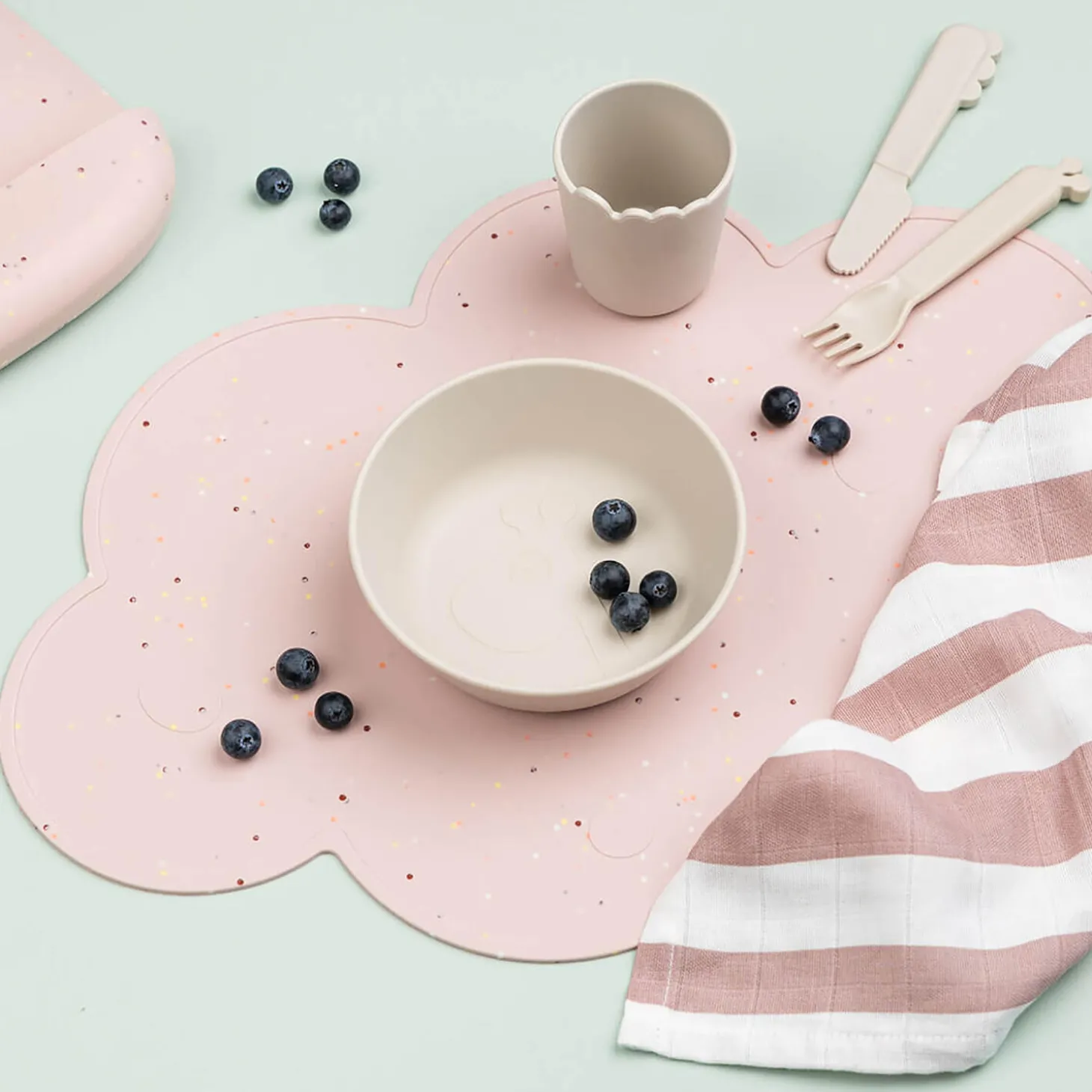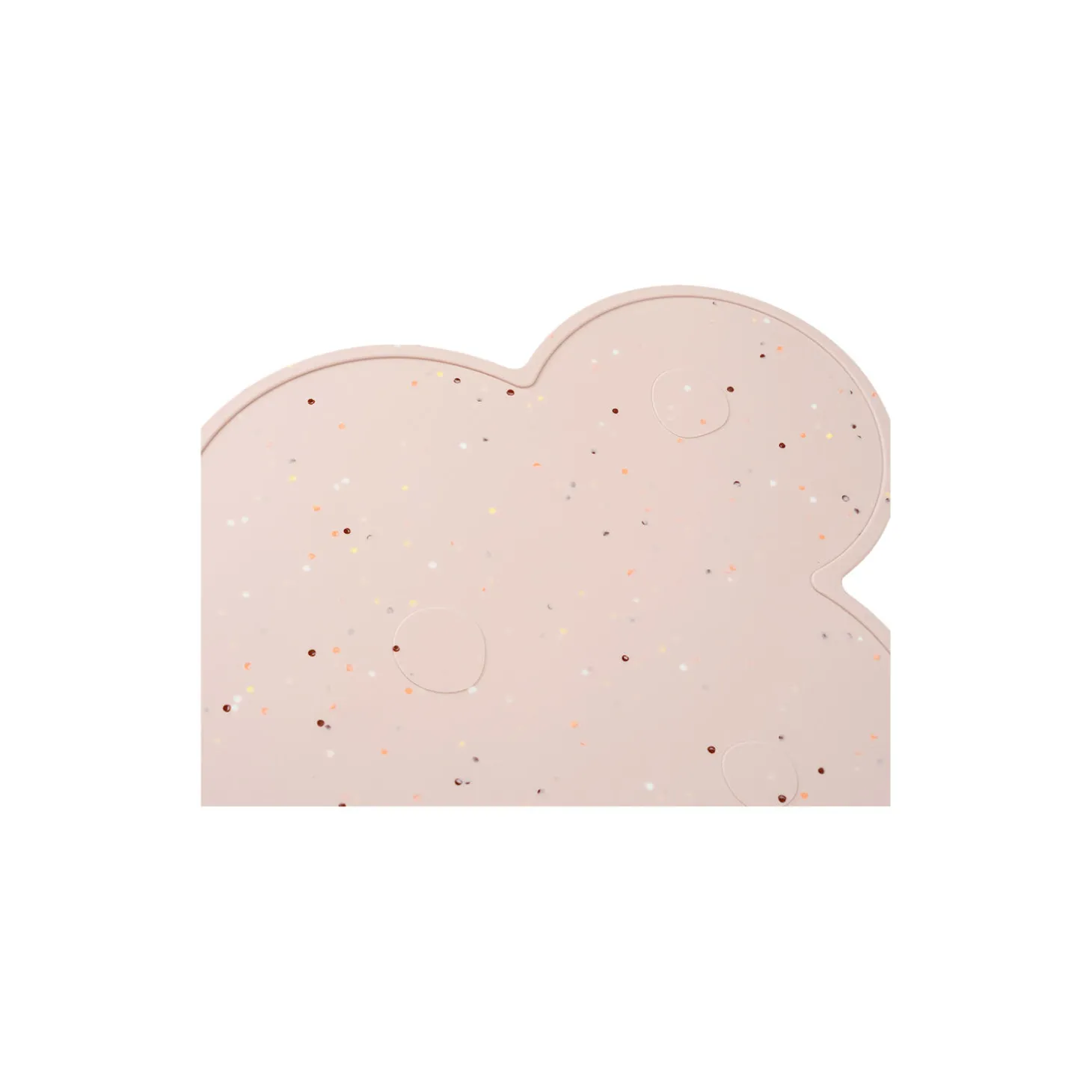 • Sød skyformet dækkeserviet i en fin pudderfarve • Pyntet med festlig konfetti til selv den mindste fest • En lille forhøjet kant stopper spildt væske • 100% fødevaregodkendt og BPA-fri silikone gør det sikkert for børn at bruge • Silikones naturlige antiskrid sikrer, at dækkeservietten bliver på sin plads • Beskytter din bordplade mod spildt mad og løbende væsker • Perfekt til køkkenbordet, familiemiddagen eller kreative aktiviteter • Let at tørre af eller vaske i opvaskemaskinen • Let og nem at rulle sammen og tage med sig