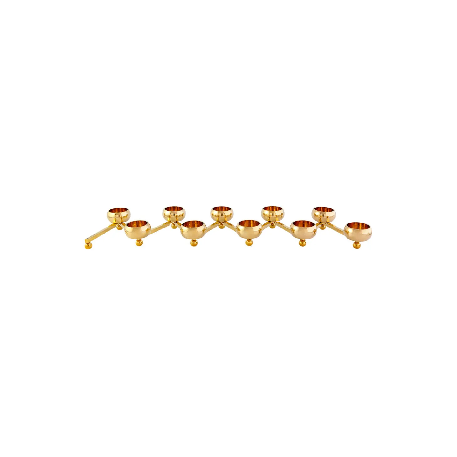 A pleasant source of light for tealights, where you can choose your own shape, a straight line, a circle, a star, a zig-zag or the shape of your choice. CONSTELLA comes in two sizes; with five or ten tealight holders. Other attachments can be added, special fittings for conventional candles, glass insert that works as a small vase for floral decorations, black metal holders for candles and brass star for decoration.