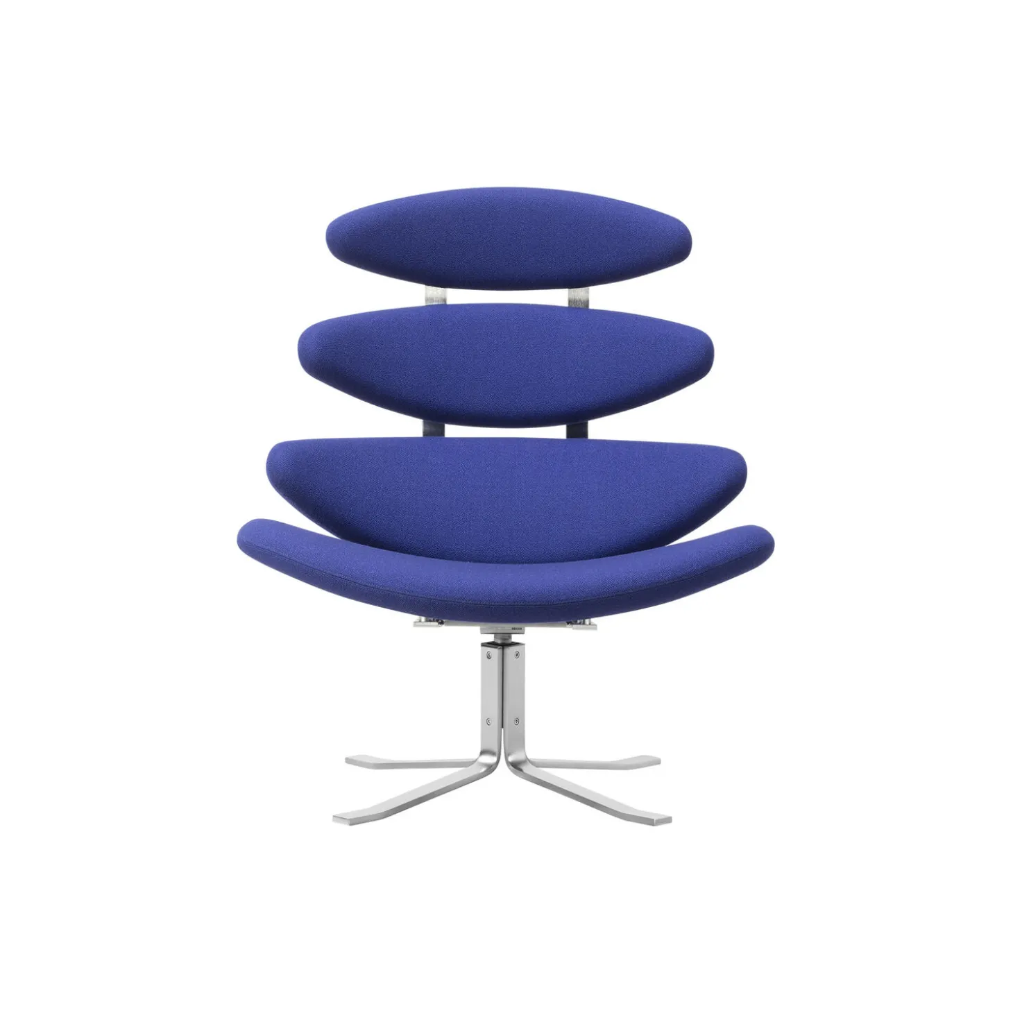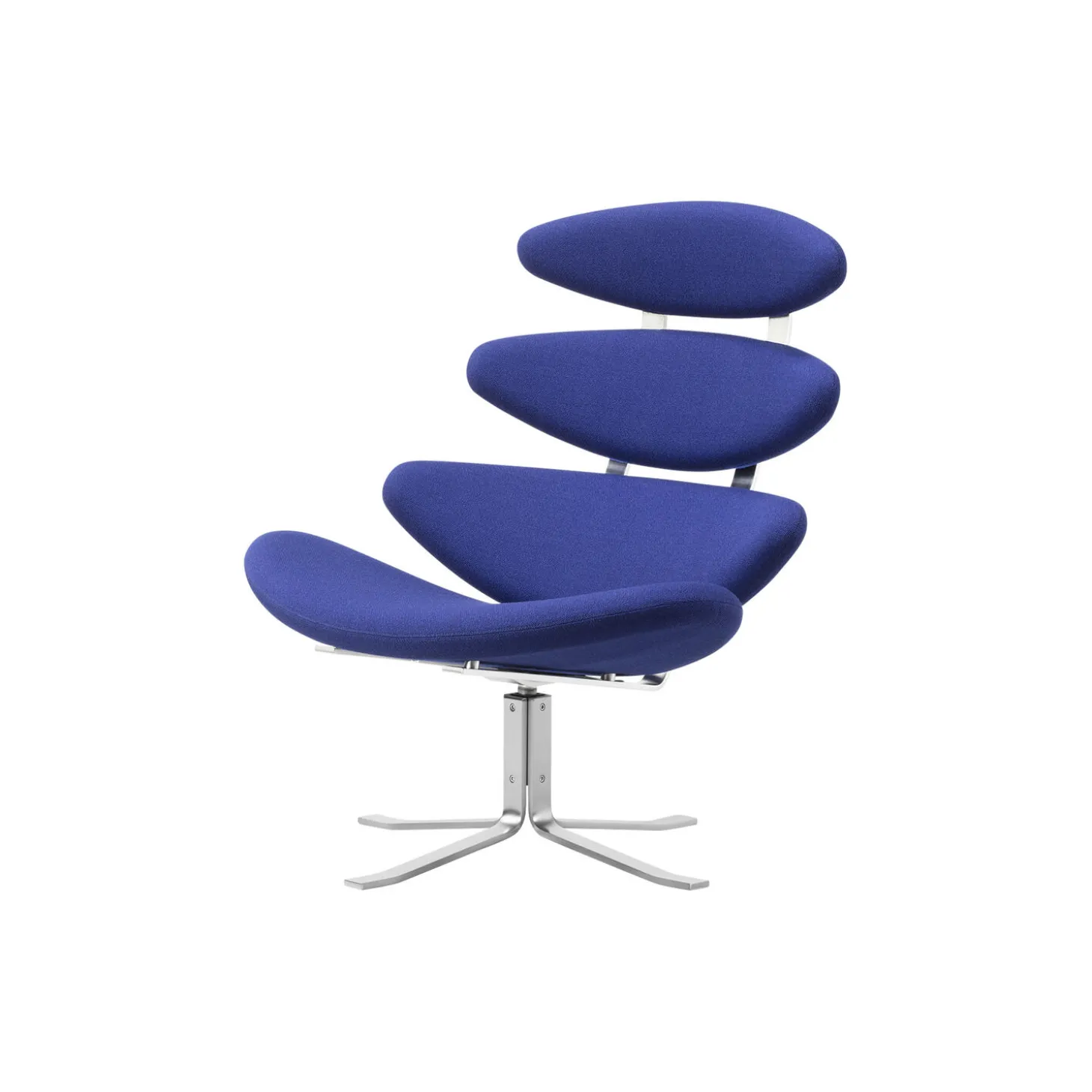 Corona stolen er en iøjnefaldende og eksperimenterende ener i dansk design. Stolen er kendt for sin ikoniske silhuet med ellipseformede, polstrede sædepuder, der gradvist øges i størrelse. Corona har et drejestel og en fleksibel ryg, der gør stolen yderst komfortabel og velegnet til private hjem såvel som lobbyer og kontormiljøer.