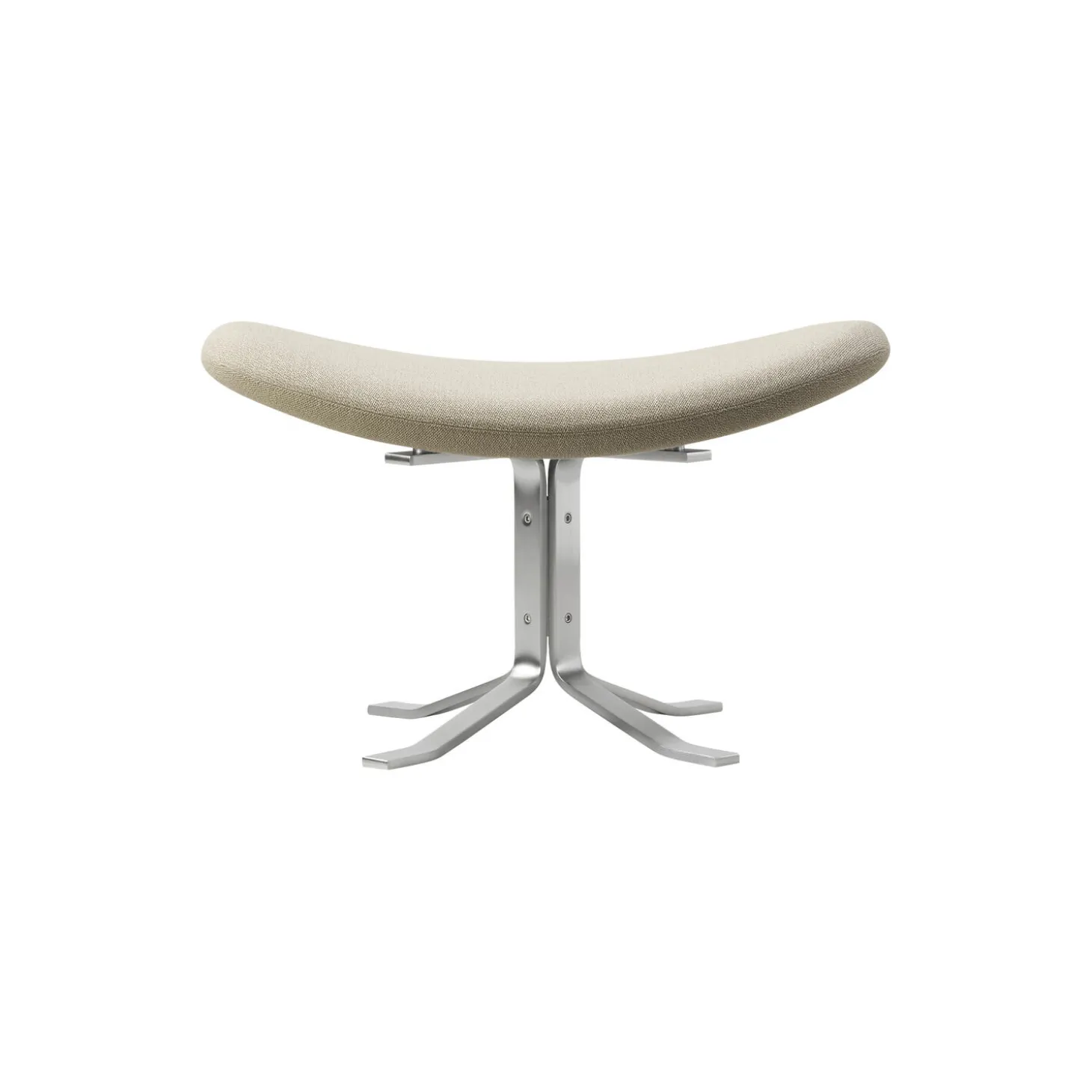 Polstret fodskammel. Skal i formstøbt koldskum forstærket med stål, fuldpolstret i læder. Stel i fjederstål. Monteret med naturfiberglidere, som alternativ til filt.