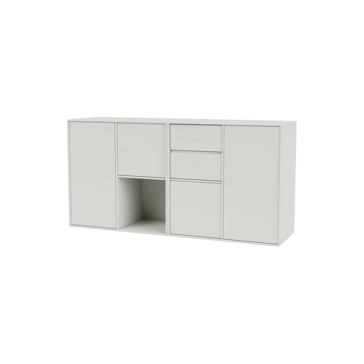 COUPLE er en moderne designet skænk, som er perfekt til opbevaring i stuen, entréen eller køkkenet, og som giver mulighed for både at udstille og at gemme ting. Skænken er rummelig og består af to skuffer, én åben hylde og skabe i forskellige størrelser. Ophængsbeslag medfølger.