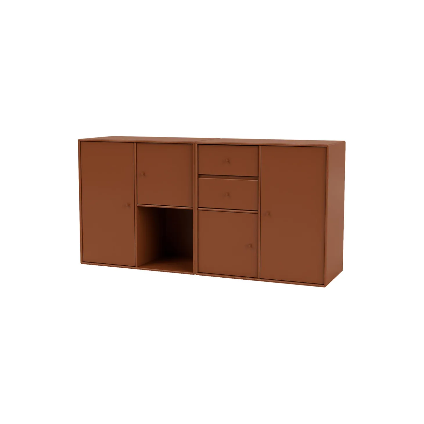 COUPLE er en moderne designet skænk, som er perfekt til opbevaring i stuen, entréen eller køkkenet, og som giver mulighed for både at udstille og at gemme ting. Skænken er rummelig og består af to skuffer, én åben hylde og skabe i forskellige størrelser. Ophængsbeslag medfølger.