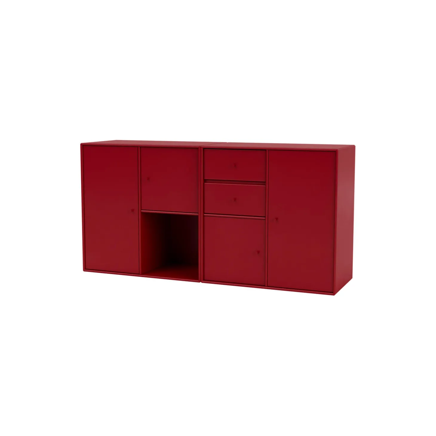 COUPLE er en moderne designet skænk, som er perfekt til opbevaring i stuen, entréen eller køkkenet, og som giver mulighed for både at udstille og at gemme ting. Skænken er rummelig og består af to skuffer, én åben hylde og skabe i forskellige størrelser. Ophængsbeslag medfølger.