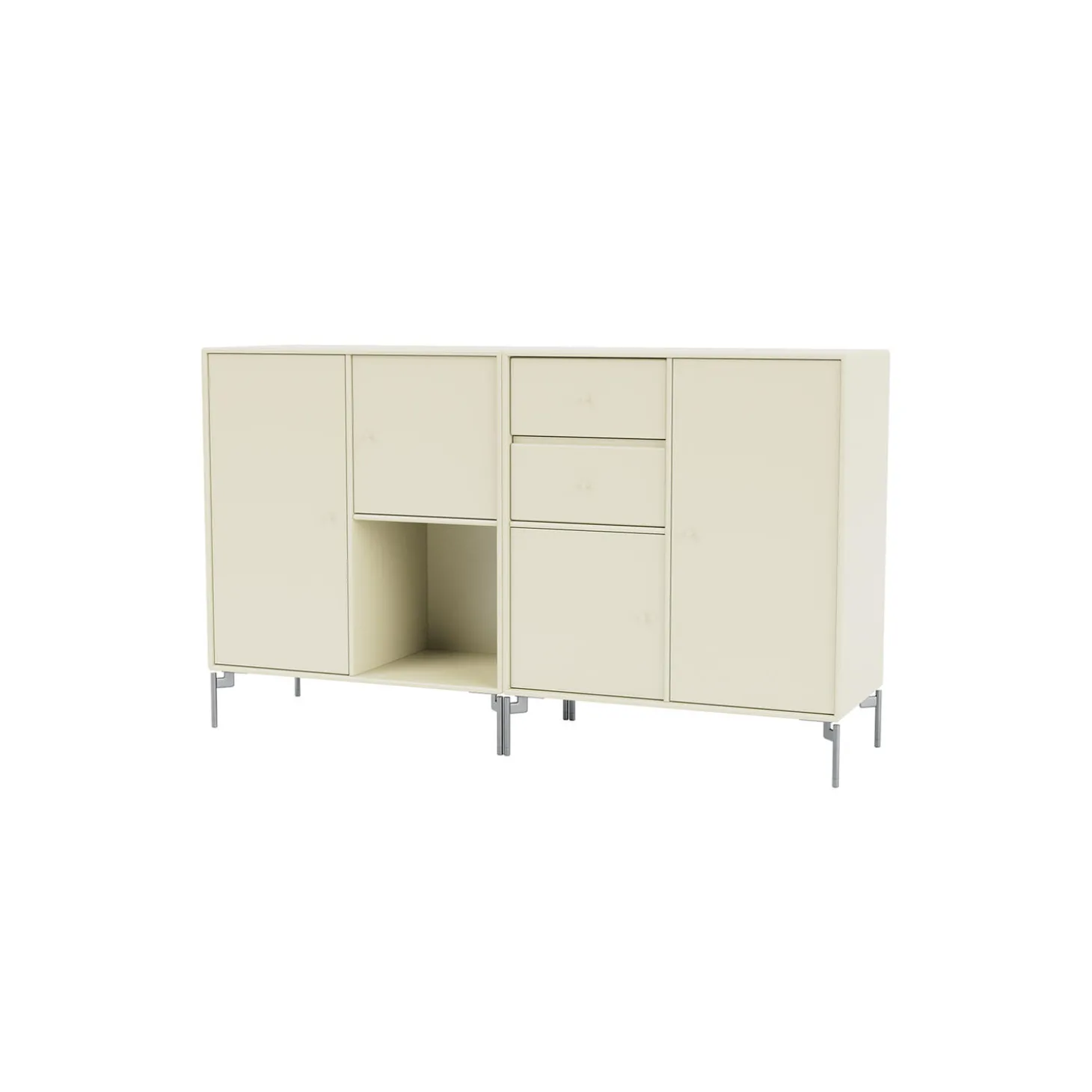 COUPLE er en moderne designet skænk, som er perfekt til opbevaring i stuen, entréen eller køkkenet, og som giver mulighed for både at udstille og at gemme ting. Skænken er rummelig og består af to skuffer, én åben hylde og skabe i forskellige størrelser.