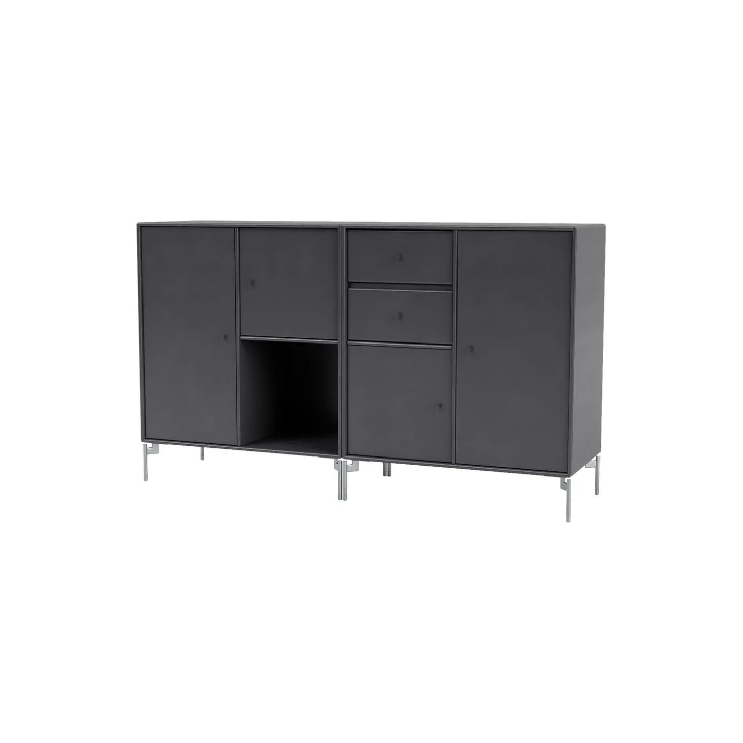COUPLE er en moderne designet skænk, som er perfekt til opbevaring i stuen, entréen eller køkkenet, og som giver mulighed for både at udstille og at gemme ting. Skænken er rummelig og består af to skuffer, én åben hylde og skabe i forskellige størrelser.