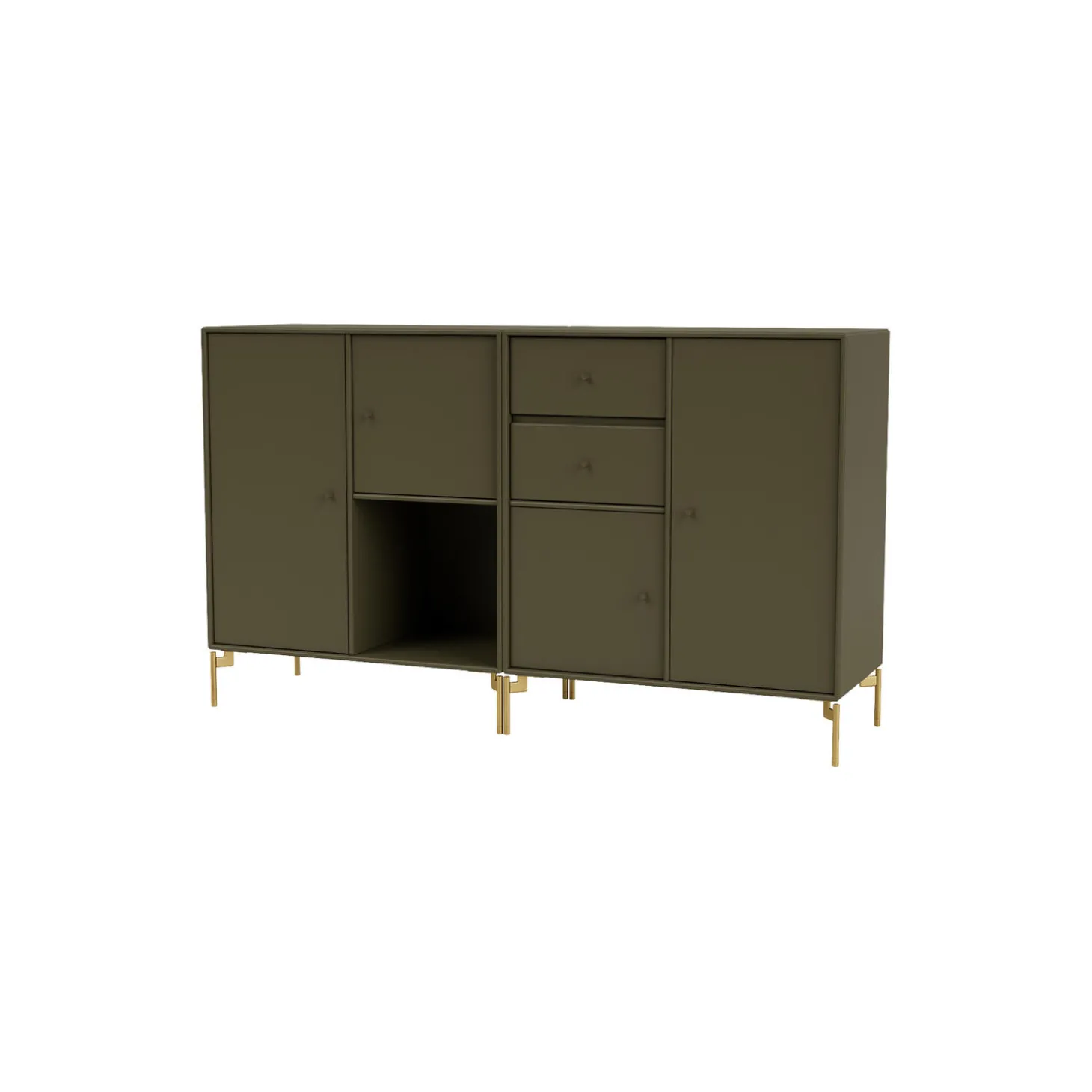 COUPLE er en moderne designet skænk, som er perfekt til opbevaring i stuen, entréen eller køkkenet, og som giver mulighed for både at udstille og at gemme ting. Skænken er rummelig og består af to skuffer, én åben hylde og skabe i forskellige størrelser.