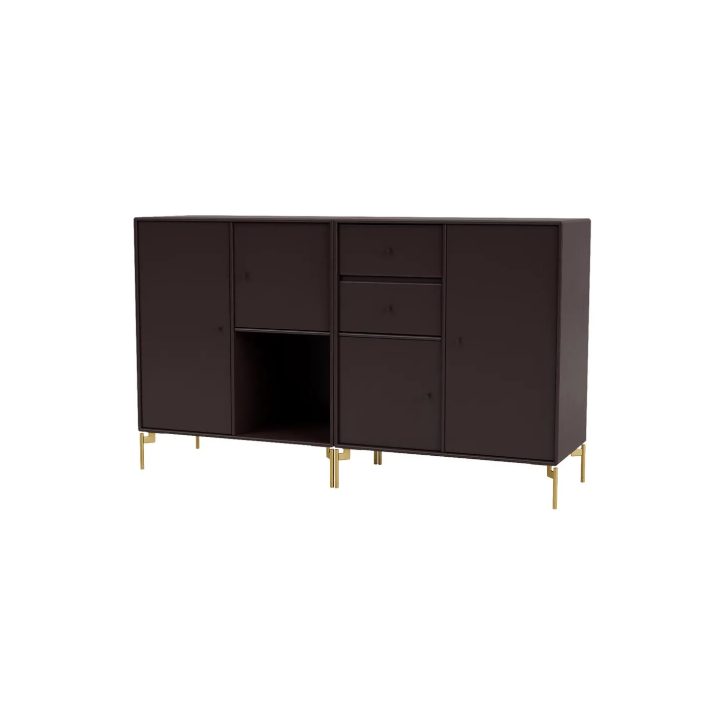 COUPLE er en moderne designet skænk, som er perfekt til opbevaring i stuen, entréen eller køkkenet, og som giver mulighed for både at udstille og at gemme ting. Skænken er rummelig og består af to skuffer, én åben hylde og skabe i forskellige størrelser.