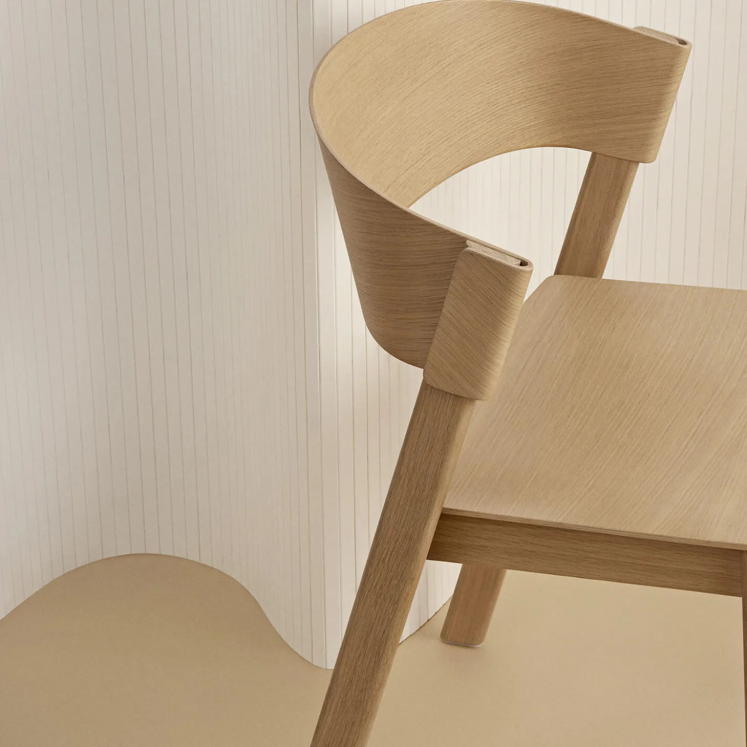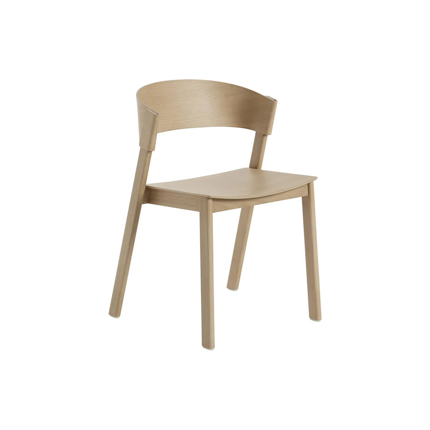 Cover Side Chair from Muuto. Referencing the values of forward-thinking craftsmanship and Scandinavian materiality, the Cover Side Chair is an elegant perspective on the timeless wooden chair. With its curved backrest that folds elegantly around its back legs and ties the design together, the Cover Side Chair explores the possibilities of veneer, paired with a deep comfort, modern expression and sturdy base in solid wood. The design is stackable and features a water-based lacquer.