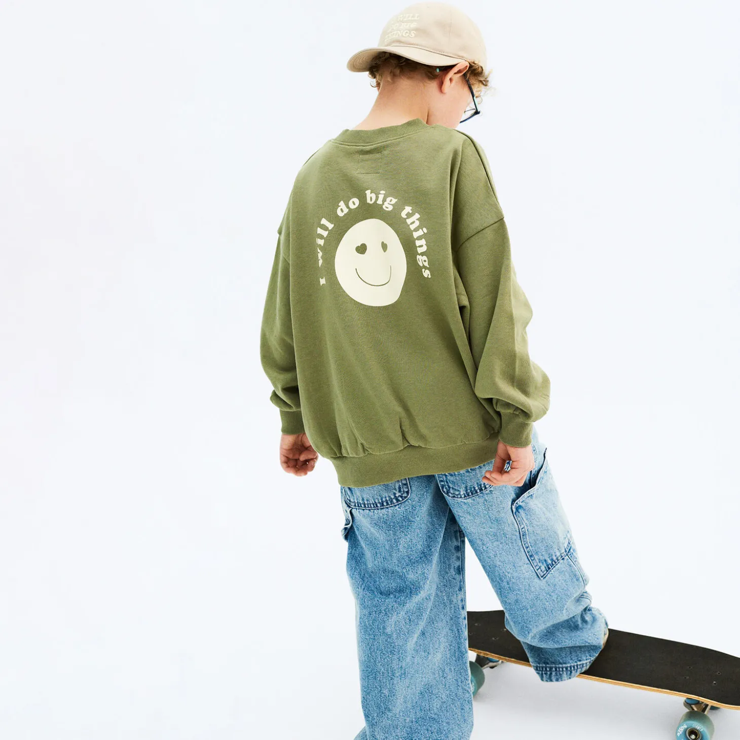 Wheat x Pernille Teisbæk for Børnecancerfonden’ is a limited edition collection of unisex children’s clothing – all profits go to the Danish Childhood Cancer Foundation.—Oversize t-shirt in soft GOTS-certified jersey with a print saying ‘I Will Do Big Things’ on the back.—- Standard 100 by OEKO-TEX®- 100% organic cottonThe product is GOTS certified.Certified by CUC license no. 1198955