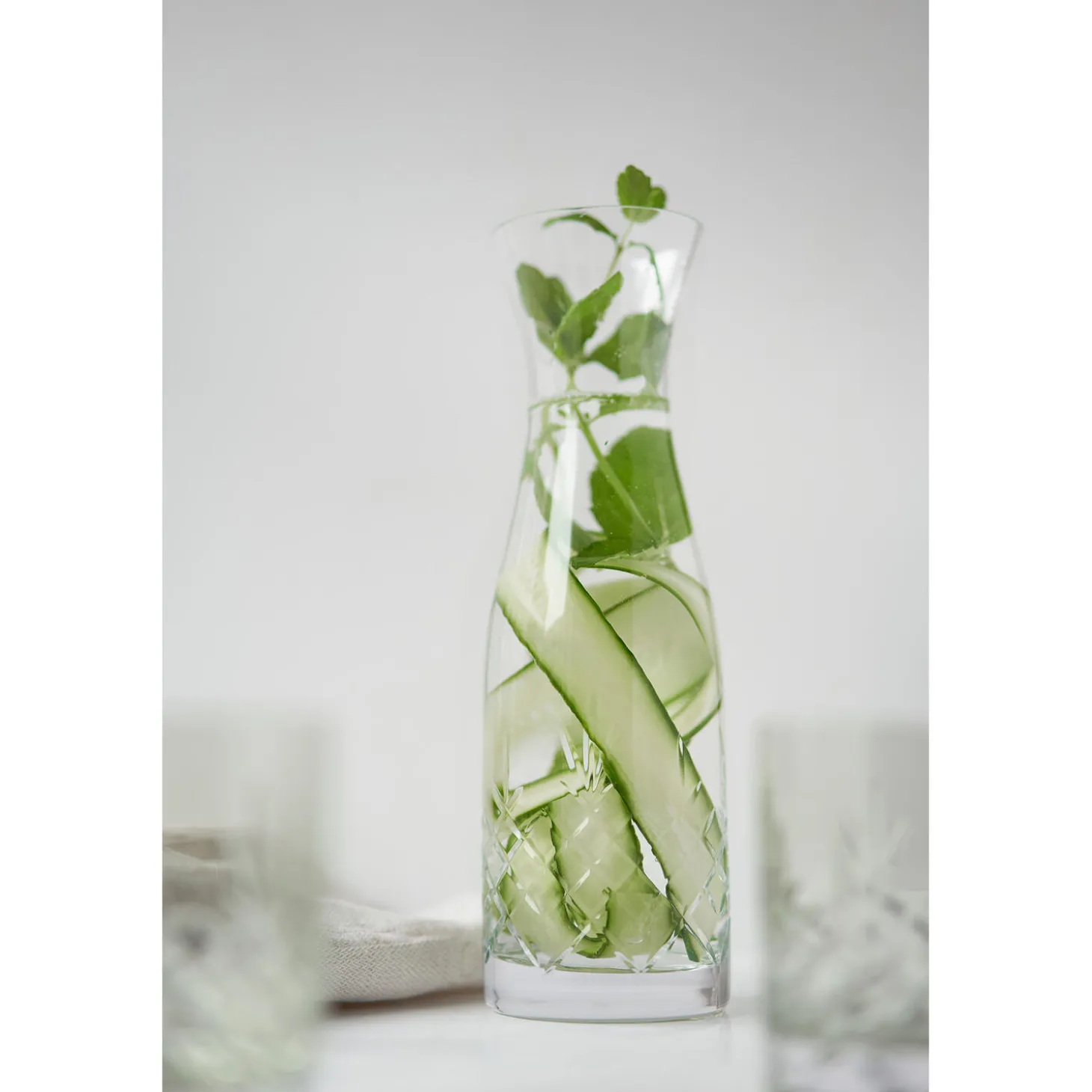 Kanden er lavet i smukt slebet klart krystalglas med et glat og lysreflekterende design, der fremhæver indholdet. Et praktisk element til din samling, der både kan bruges til cocktails, læskende drikke eller som vase til den enkle buket. Crispy glassene fra Frederik Bagger er diamantslebet. Den bæredygtige glasmasse bidrager til en unik klarhed og kvalitet. Glassene tåler opvaskemaskine samt temperaturer fra -25 grader op til 180 grader.
