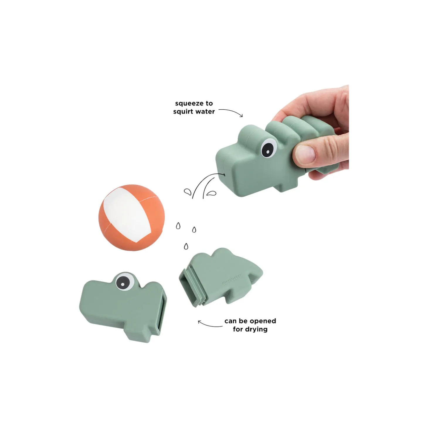 • Styrker dit barns greb og finmotorik• Klem for at fylde og sprøjte med vand• Krokodillen kan åbnes for tørring• Fremstillet af silikone, der er fri for BPA og andre skadelige stoffer• En Croco i sej grøn og en stribet bold for visuel stimulering• Lad en Deer friend underholde, når det er tid til et bad