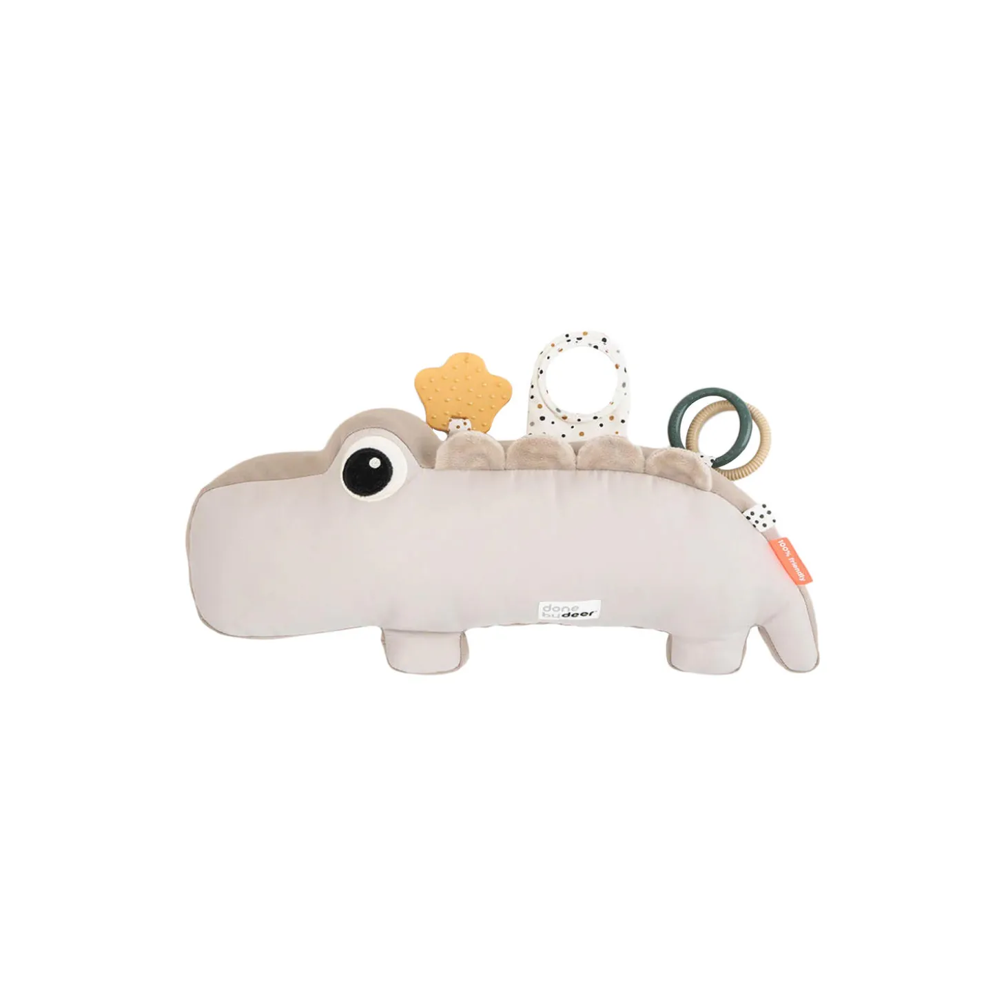 Croco tummy time aktivitetslegetøj i 100% polyester med fyld i genanvendt 100% genanvendt polyester, 100% TPE og 100% PP-plast fra Done by Deer. Farve: sand. Mål: H: 15 x L: 41 x D: 10 cm.