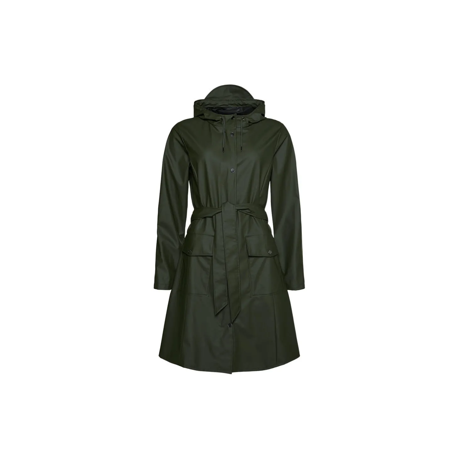 Curve Jacket er Rains’ fortolkning af en trenchcoat til damer i minimalistisk design med let A-facon og bælte i taljen. Jakken har hætte med skygge og snøre, lynlås foran med stormlukning og trykknapper, justerbare manchetter, to udvendige forlommer samt trekantet slids bagpå. Curve Jacket er fremstillet i Rains’ vandtætte signatur PU-materiale og har ultrasonisk svejsede sømme samt en let og blød finish.