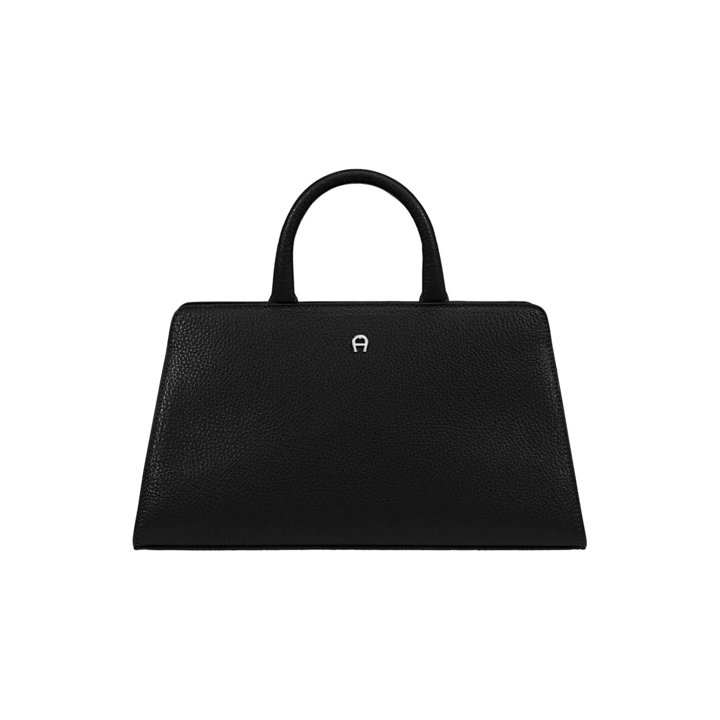En tidløs klassiker nyfortolket. Cybill håndtaske størrelse M fra AIGNER i en ny, strakt form. Lavet af højkvalitets okselæder, fremstillet i Italien, denne taske er et absolut højdepunkt i kollektionen. Den lyse guldfarvede eller sølvfarvede metaldele runder det smarte design af. Tasken er alsidig på grund af den justerbare skulderrem. Oplev din nye yndlingstaske til dig selv.