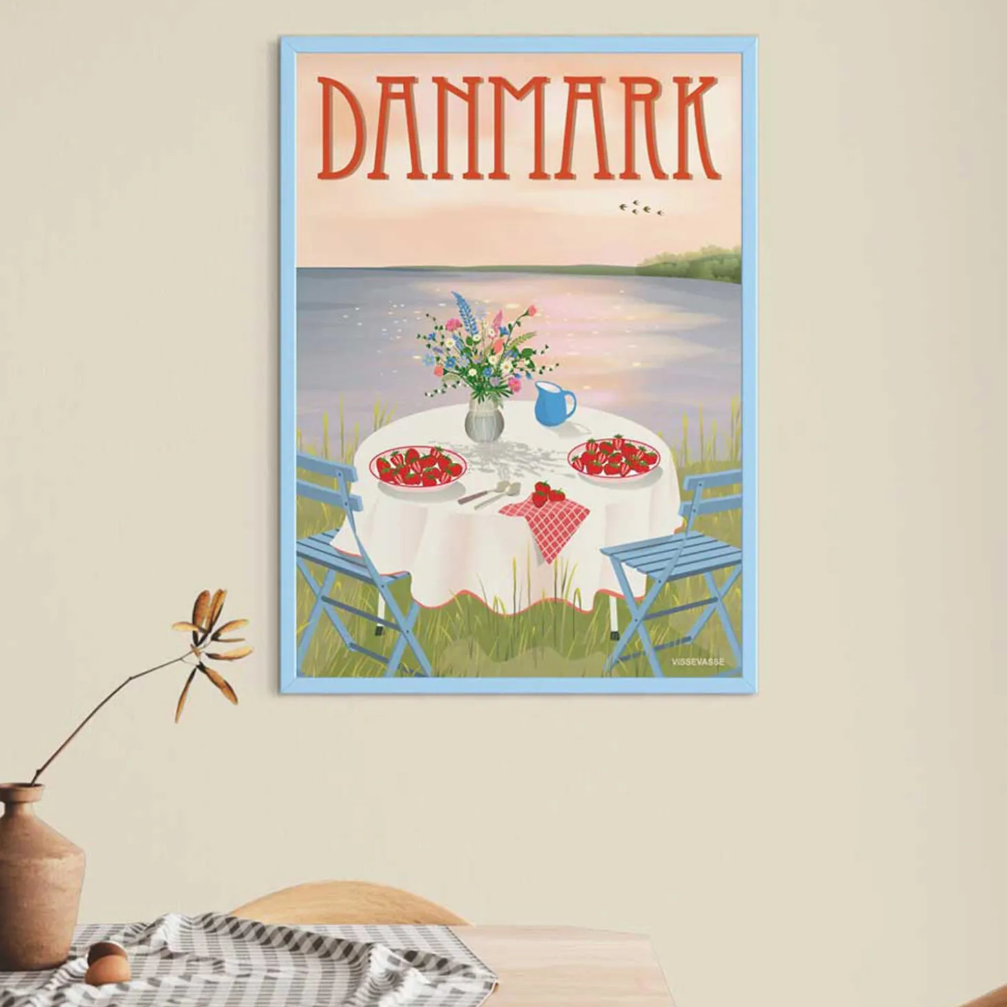 Der er noget helt særligt over danske jordbær. Hele vinteren længes vi efter de søde bær, som følger os gennem hele sommeren. Det er næsten umuligt at gå forbi en vejsidebod uden at købe en bakke jordbær med. Uanset om de nydes som snack, i rødgrød eller med fløde og sukker, så er det simpelthent smagen af dansk sommer!Plakaterne er FSC certificeret og trykt på 170 gr. Arctic Silk papir produceret i Sverige. Produktet er produceret i Danmark.