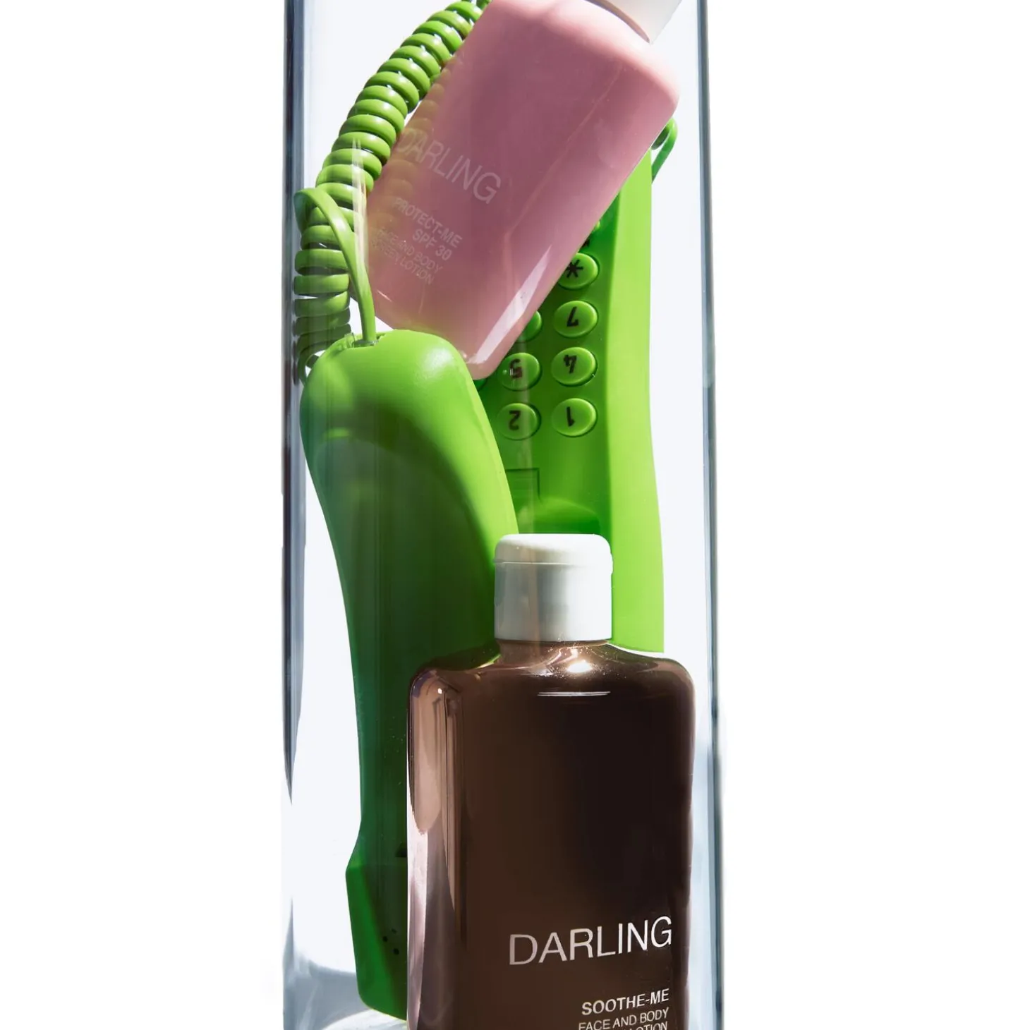 After Sun Lotion til ansigt og kropSOOTHE-ME er en fornyende, kærtegnende ansigts- og kropslotion, der er designet til at give huden komfort og velvære efter soleksponering.Ceramider holder på fugten og styrker hudens naturlige barrierefunktion, E-vitamin giver suveræn antioxidantbeskyttelse, og en plejende cocktail af kokosolie og jojobaolie genopbygger huden, uden at den føles fedtet. Beriget med ekstrakter af Aloe Vera og kamille giver den herlige formel lindring, mindsker irritationer og holder huden utrolig blød. Endelig giver Shea Butter huden genopbyggende fordele og en virkelig foryngende oplevelse.Denne aftersun er helt unik med Darlings signaturduft som et tropisk paradis i en flaske med blide, frugtige noter af kokosnød og fersken sammen med et signaturstrejf af tiaréblomst og vanilje. SOOTHE-ME er silkeblød og hurtigt absorberende, så gør den til din essentielle aftersun til at genfugte, køle og lindre spændt, soleksponeret hud.DUFTBESKRIVELSE: Blomstret, frisk, sød, pudret Topnoter: Ozon, jordbær, fersken, kokosnød, appelsin, æble Hjertenoter: Liljekonval, tiaré, rose Basenoter: Vanilje, iris, ylang, ylang, neroliNyd den behagelige konsistens af Darlings Glowy Screen SPF 50+, der giver innovativ beskyttelse til huden og en strålende glød uden at efterlade den fedtet eller med en hvid hinde.Darling Soothe-Me er en ultra beroligende After Sun lotion, som hjælper med at bevare og forlænge den solbrune kulør. Vegan-venlig og dermatologisk testet på følsom hud.FORDELE:- Nærende- Genopbyggende- Beroligende- Anti-oxidant- Anti-age- KølendeAKTIVE INGREDIENSER:CERAMIDERCeramider er essentielle for hudens naturlige barriere, som beskytter mod miljømæssige stressfaktorer og bevarer fugten. De spiller en vigtig rolle i at styrke og genopbygge barrieren, hvilket hjælper med at fastholde hudens fugt og forhindre tab. Ceramider fremmer hudens sundhed og gør den glattere og mere modstandsdygtig. Deres reparerende og beskyttende egenskaber gør dem til en værdifuld ingrediens i hudplejeprodukter, der understøtter hudens fugtbalancer og funktion.SHEA SMØRSheasmør er en nøgleingrediens, der plejer og beskytter huden intensivt. Udover at fugte huden lindrer sheasmør med sine beroligende egenskaber og hjælper med at reducere stress på huden. Rig på A-, D-, E- og F-vitamin, har sheasmør reparerende egenskaber, som blødgør, udglatter og giver dyb hydrering. Det forbedrer hudens elasticitet og beskytter mod eksterne påvirkninger.VITAMIN EVitamin E er kendt for sine stærke antioxidantegenskaber, der beskytter huden mod miljømæssige påvirkninger og forhindrer tidlige aldringstegn. Dets fugtgivende effekt hjælper med at bevare hudens naturlige hydrering, hvilket gør huden blød og smidig. Vitamin E beroliger også irriteret hud med sine anti-inflammatoriske egenskaber og fremmer en jævn teint, samtidig med at det reducerer synligheden af ar.ALOE VERAAloe Vera er kendt for sine beroligende og fugtgivende egenskaber, der lindrer irriteret hud og hjælper med at bevare hudens fugtniveau. Den er rig på antioxidanter, som beskytter huden mod frie radikaler og reducerer tegn på ældning.KAMILLE-, PADDEROKKE-, MALVA- OG ROSMARINEKSTRAKTERDisse planteekstrakter er kraftfulde antiinflammatoriske ingredienser med værdifulde antioxidantegenskaber, der beskytter huden mod skader fra frie radikaler og fremmer en sund hud.KOKOSOLIE, JOJOBAOLIE, ARGANOLIEDisse naturlige olier virker som effektive blødgørere, der tilfører intensiv fugt og udglatter hudens overflade. De er rige på næringsstoffer og antioxidanter, der nærer huden og beskytter mod eksterne påvirkninger, samtidig med at de fremmer hudens sundhed og vitalitet.Anvendelse:Til daglig brug hele året rundt. Påfør generøst og jævnt på ansigt og hals som det sidste trin i din hudplejerutine, før makeup og 15 minutter før soleksponering. Påfør ofte for at opretholde beskyttelsen, mindst hver anden time, og især efter sved, svømning eller håndklædetørring.ANVENDELSE: Påføres jævnt i ansigtet og på kroppen og masseres forsigtigt ind, indtil den er helt absorberet. Ideel efter soleksponering for en beroligende og forfriskende effekt, der bidrager til at genoprette hudens fugtindhold. Kan også bruges som daglig fugtgivende creme til ansigt og krop.