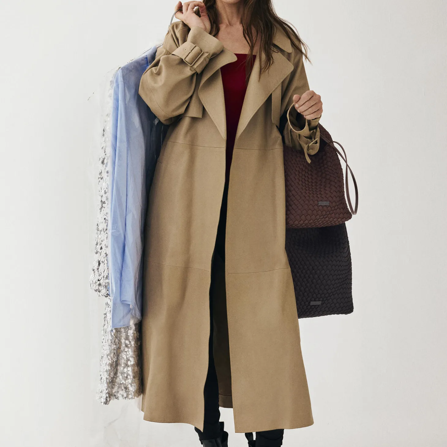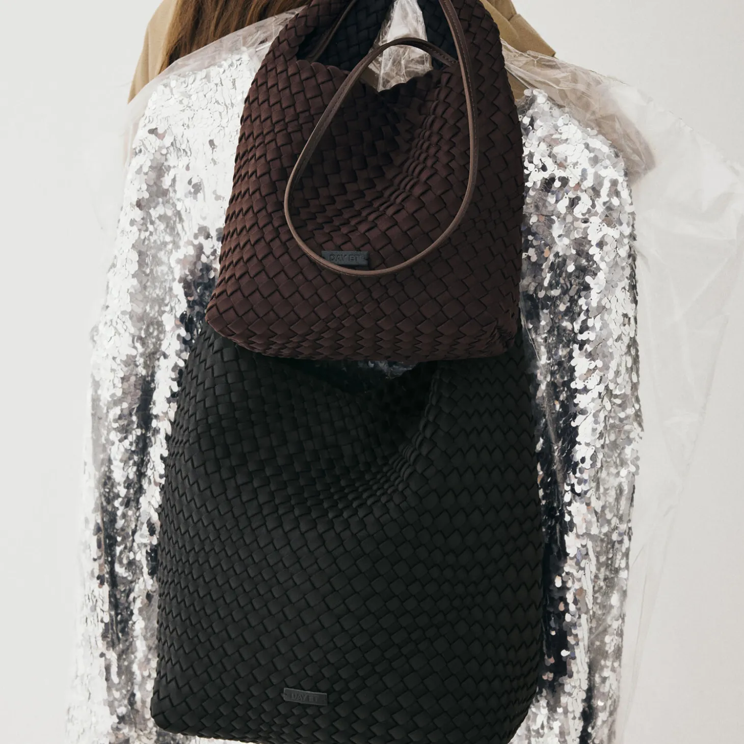 Denne rummelige skuldertaske er håndflettet i ét stykke i et opgraderet neoprenmateriale, der kombinerer blød komfort med et struktureret udtryk. Tasken lukkes med en magnetisk knap og har en forstærket bund, som giver god formstabilitet.