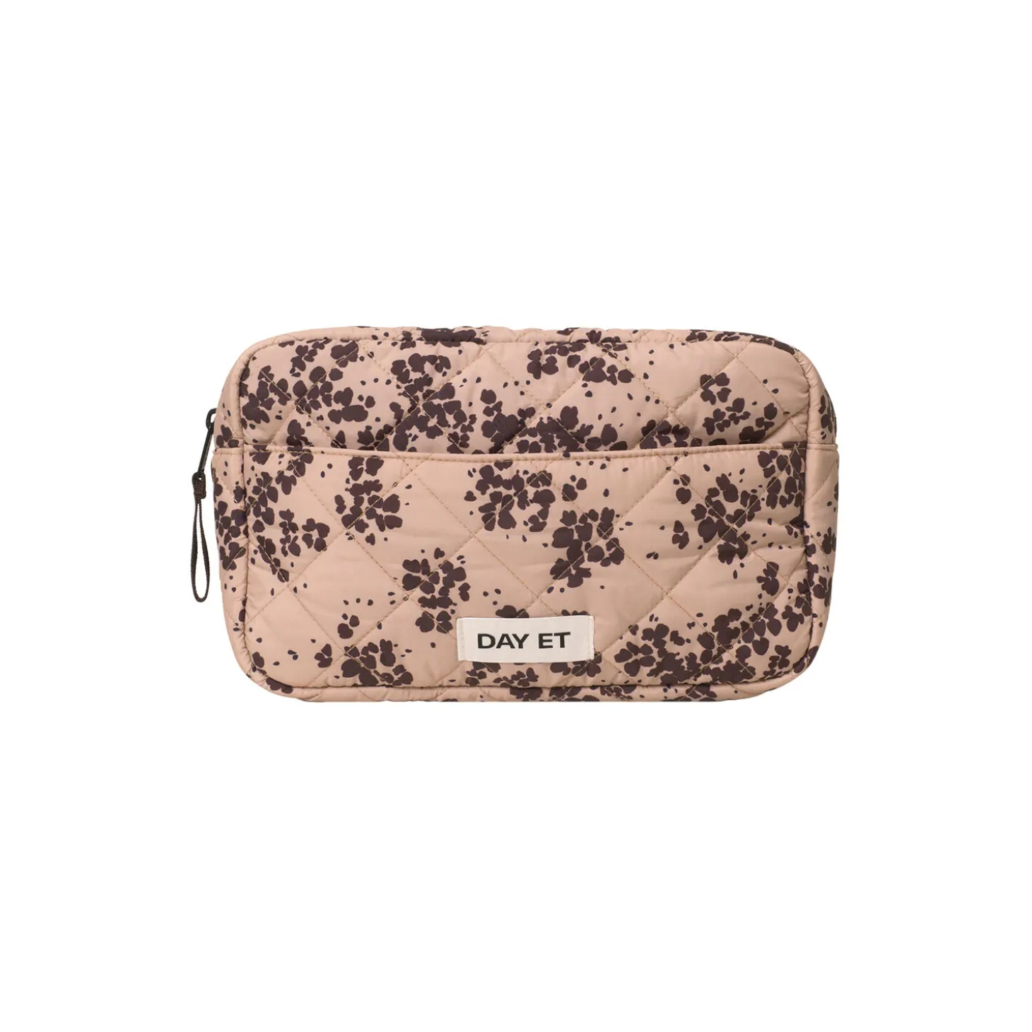 Denne toilettaske er designet i en quiltet blomstret print, og dens ydre stof og inderfor er lavet af 100% certificeret genanvendt materiale. Den lukkes med en lynlås, og den har flere indvendige lommer samt en udvendig lomme.