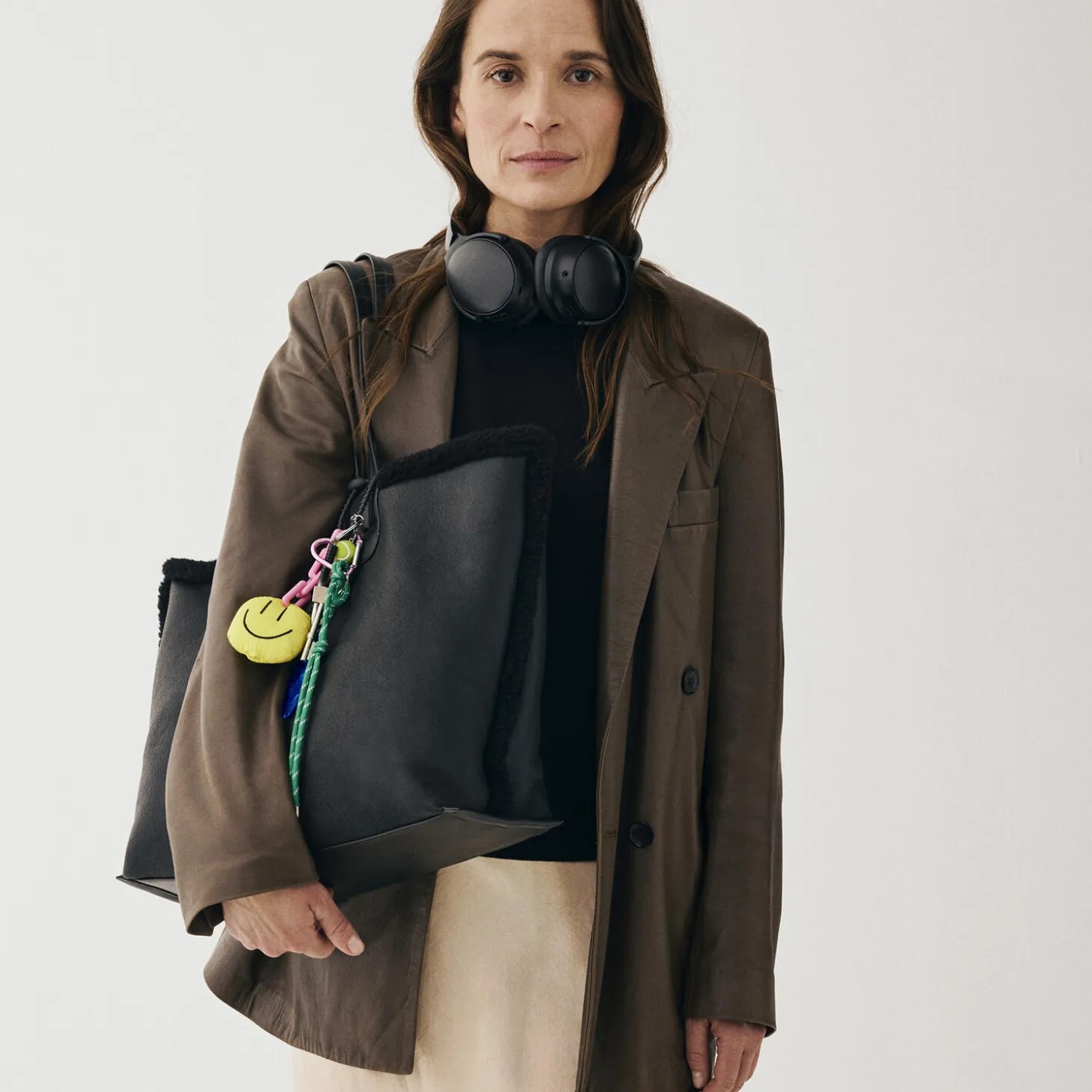 Denne farverige charm er perfekt til at give din taske et personligt twist eller som en sjov nøglering. Den er samlet på en hjerteformet karabinhage og består af fem unikke vedhæng, der skaber et legende og individuelt udtryk.