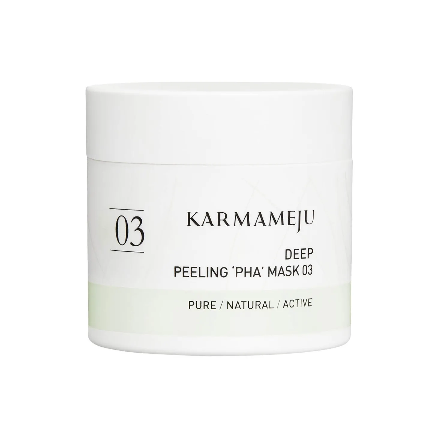 Deep ‘PHA’ Peeling Mask 03 med PHA mælkesyre fra Karmameju. Fornyer celler, reducerer fine linjer og forebygger tidlige ældningstegn. Med peelende og celleregenererende lactobionsyre og Karmamejus prisvindende, klinisk dokumenterede echinaceaekstrakt. Baseret på rensende og reparerende æteriske olier, evighedsblomst, citron, cedertræ, mandarin og geraniumrose. DEEP masken har en lav pH værdi på 3-4, der muliggør syremaskens ønskede effekt. Vaskeklud i 100% økologisk bomuld og specielt udviklet spatula medfølger. Indeholder: 65 ml. Hudtype: Til alle hudtyper. Velegnet til uren, fedtet, moden, tør og pigmenteret hud.