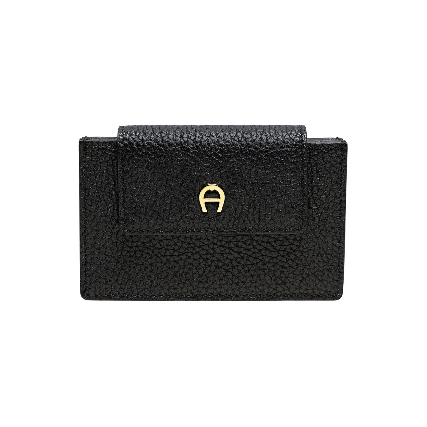 DELIA Card case. 8H x 11.5W x 2D cm. Metal parts: shiny light gold. Closure: press button. Credit cards: 3. Diverse: 2.