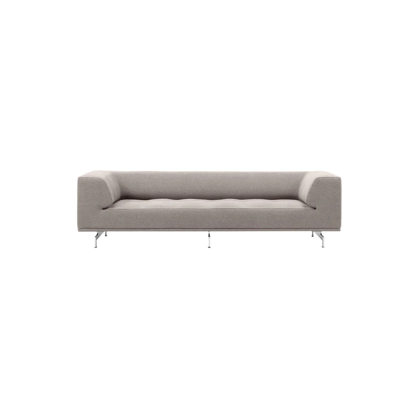 Delphi sofa med polstring i Clay 12 tekstil og stel børstet aluminium fra Fredericia. Farve: Clay 12. Mål: H: 66 x L: 240 x D: 85 cm. Siddehøjde: 37 cm. Design: Hannes Wettstein.