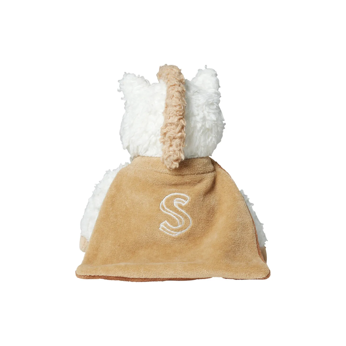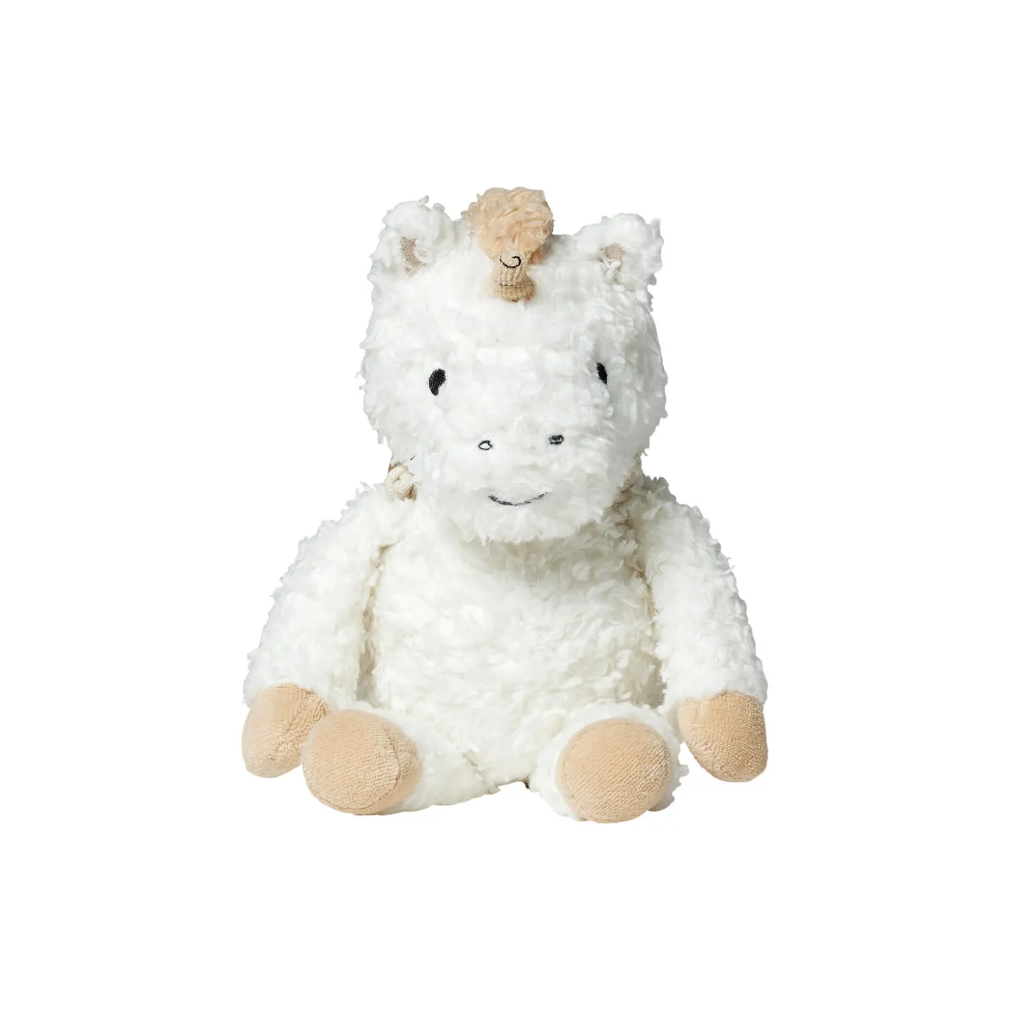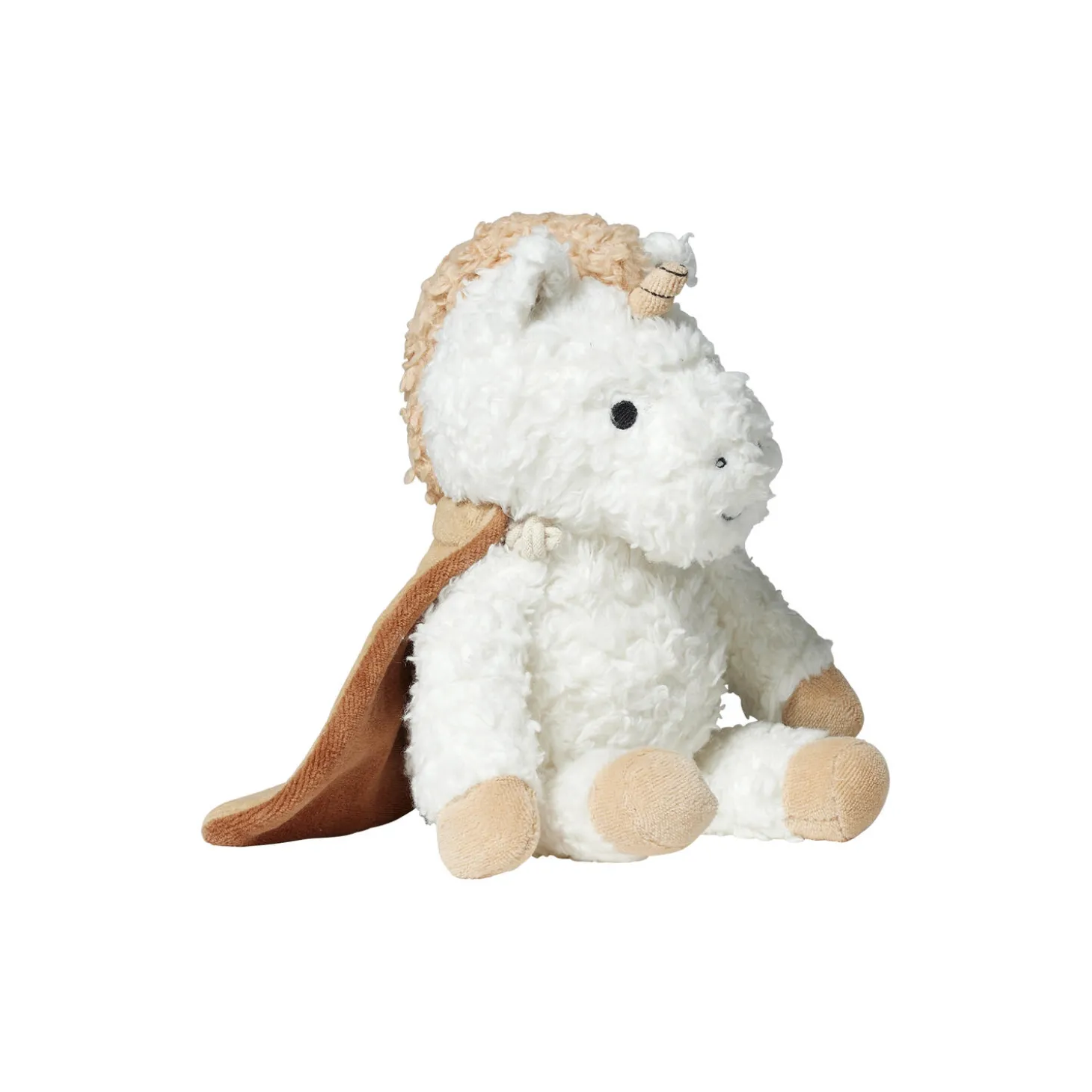Mød Sleeping Hero’s enhjørning med heltekappe – den perfekte ledsager til dit lille barns eventyr. Hos Sleeping Hero tror vi på at skabe produkter, der ikke kun er sjove og legende, men også sikre og ansvarlige. Det er derfor, at vores bamse med heltekappe er lavet af GOTS-certificeret bomuld, hvilket sikrer, at den ikke indeholder plastik som polyesterbamser, er fri for skadelige kemikalier og produceret med fair arbejdspraksis.Denne bamse måler cirka 24 cm og er den perfekte størrelse til dit barn at putte med og tage med på farten. Arme og ben er lavet ekstra lange, så de er nemme at gribe om for selv små hænder. Maven er fyldt med natursten, der har en beroligende vægt, når helten putter med sin ejer. Den kommer med en aftagelig kappe, der både fungerer som nusseklud og sutteholder. Og med sin holdbare konstruktion holder den til mange års eventyr og legetid.Enhjørningen er designet i Danmark og håndlavet i Sri Lanka. De er alle unikke og kan variere en smule i udseende og størrelse.Godkendt til brug fra 0 år.
