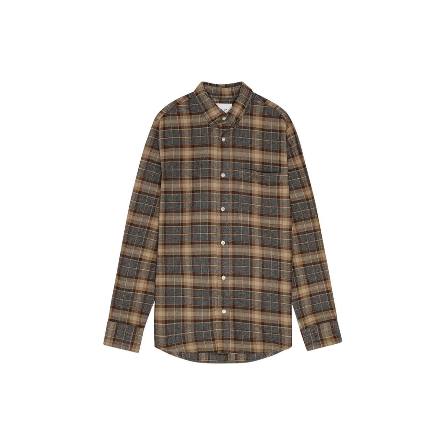 Button-up shirt made in soft cotton and woven in a flannel twill weave. Designed with a single patch pocket and rounded hemline.
