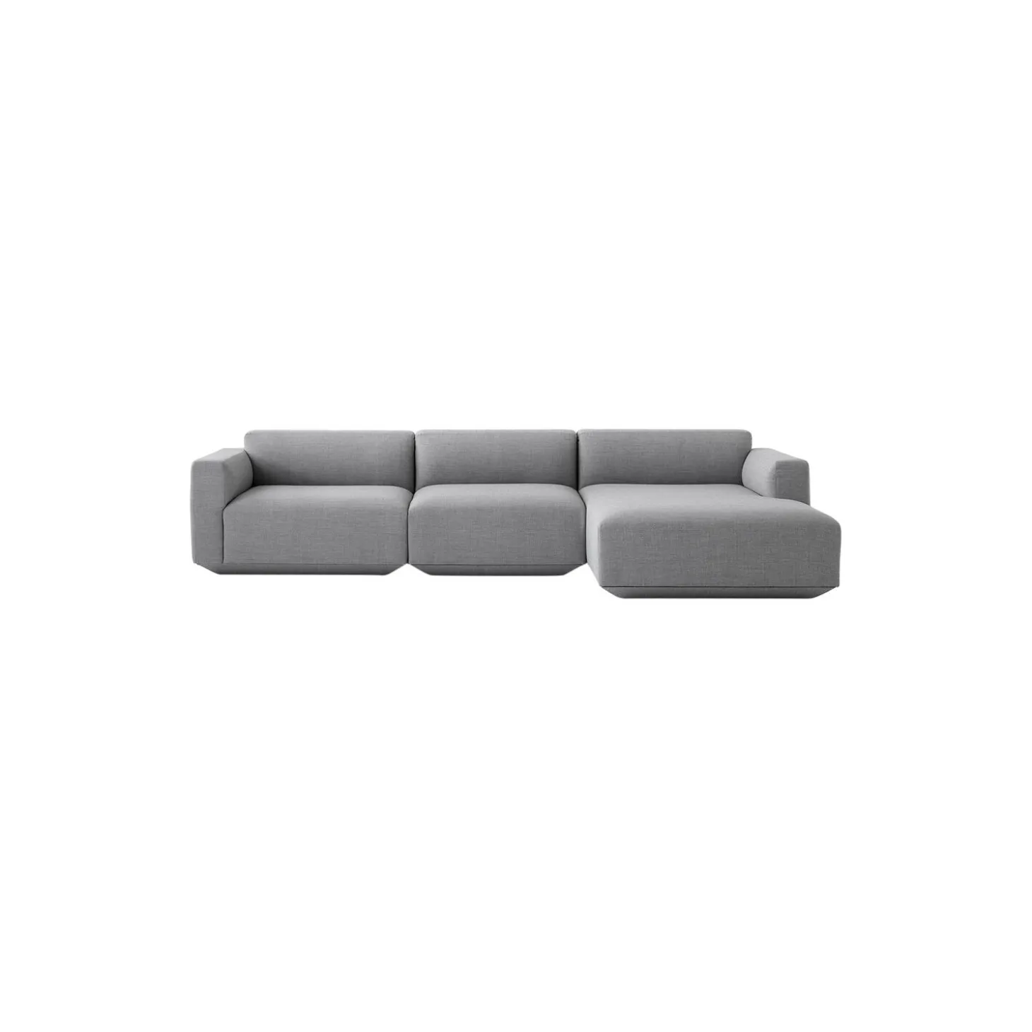 Develius modulsofa F med polstring i Fiord 151 af Kvadrat og stel i træ fra &Tradition. Farve: lysegrå. Mål: H: 70 x L: 309 x D: 89/150 cm. Siddehøjde: 42 cm. Design: Edward van Vliet. Sofapuder medfølger ikke.
