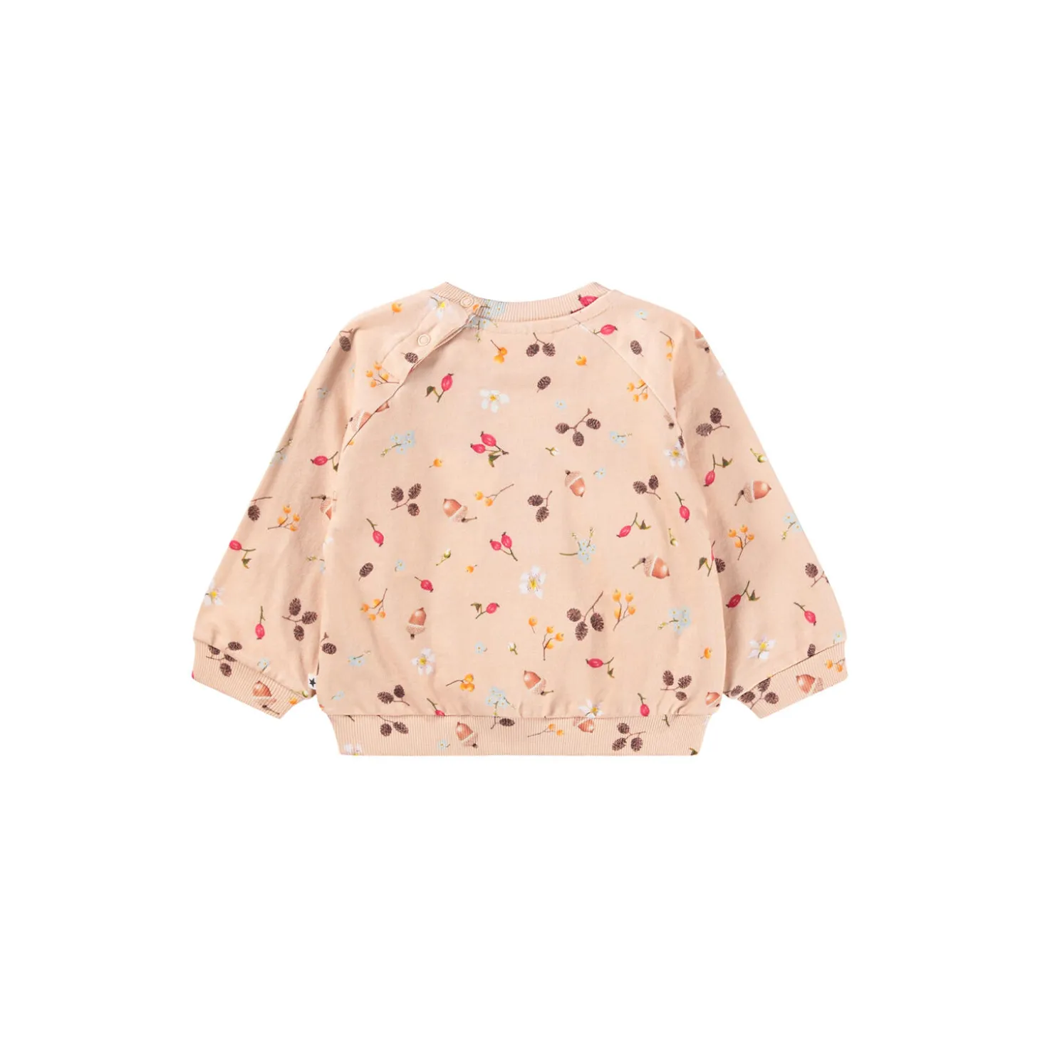 Denne lysegrønne sweatshirt fra Molo er lavet i økologisk bomuldsjersey og har et print af kaniner og blomster. Sweatshirten har raglanærmer, ribkanter og en rund halsudskæring med knaplukning bag skulderen. Den har en børstet inderside, der gør den dejlig blød og varm at have på.