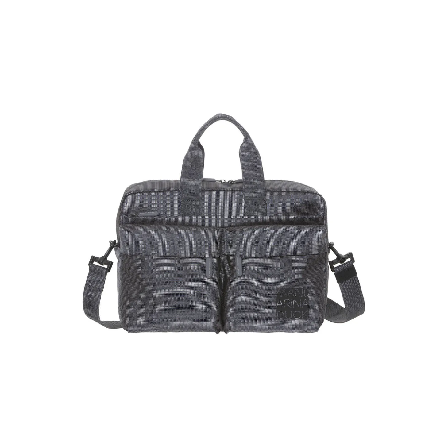 District messenger taske i 100% polyester fra Mandarina Duck. Farve: stål. Mål: H: 27 x B: 37,5 x D: 9 cm.