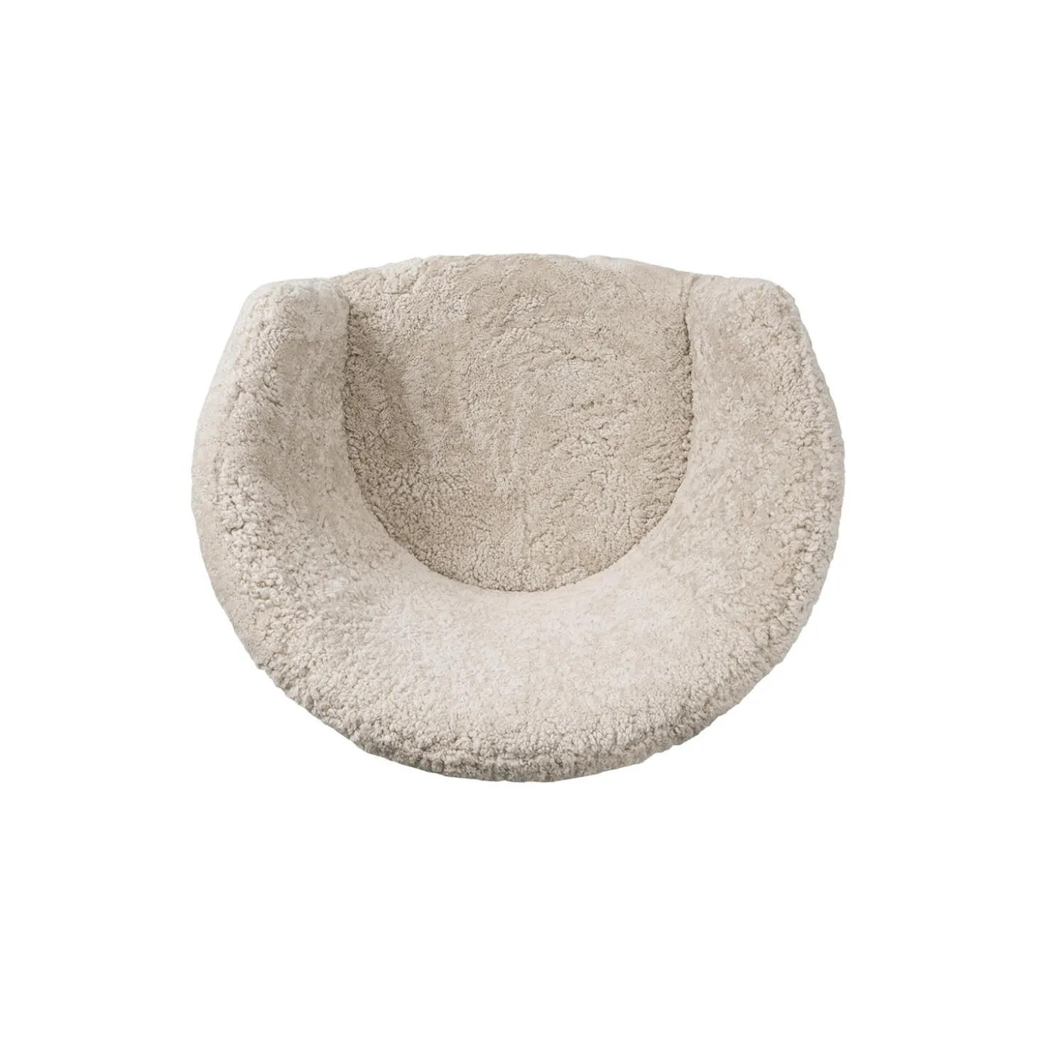- Materiale: med polstring i bouclé sheepskin og stel i lakeret valnød
