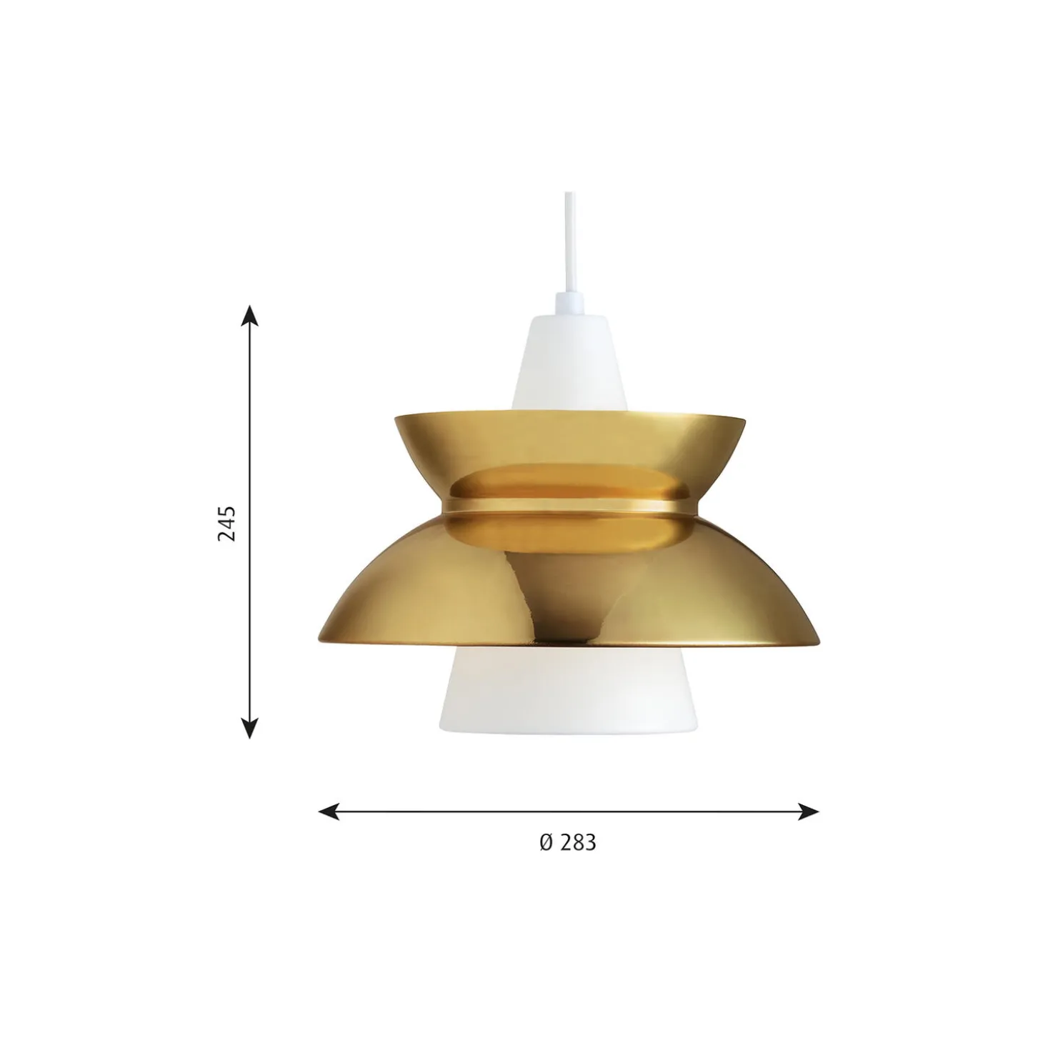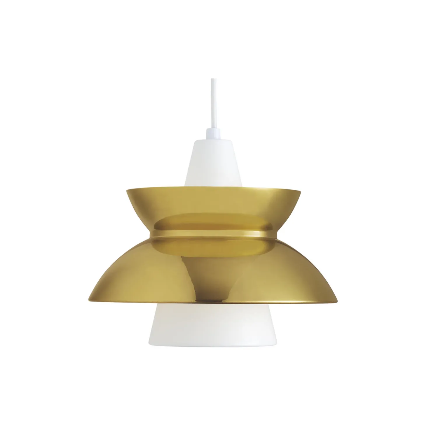 Doo-Wop pendel i optrukket ulakeret messing med ophæng i optrykt aluminium fra Louis Poulsen. Farve: messing. Mål: H: 24,5 x Ø 28,3 cm. Lyskilde: 60W E27. Design: Louis Poulsen A/S.
