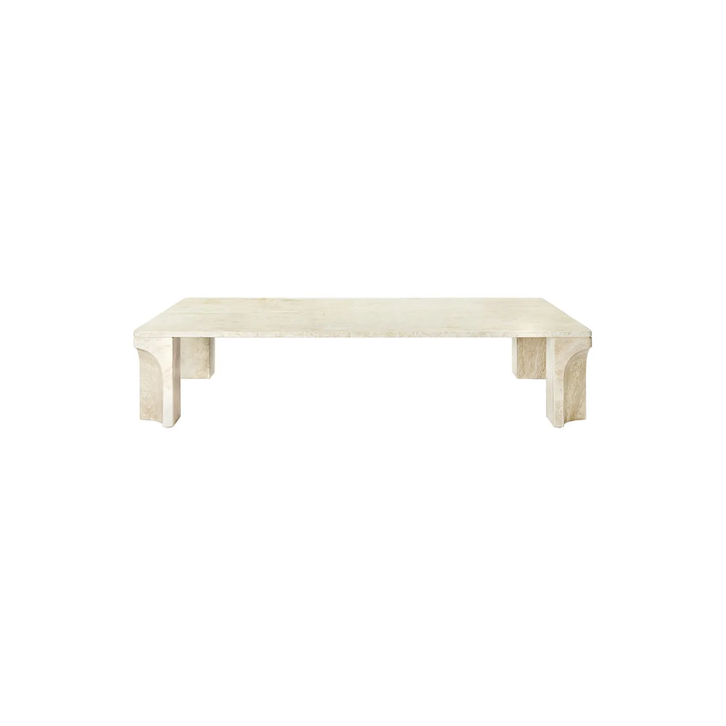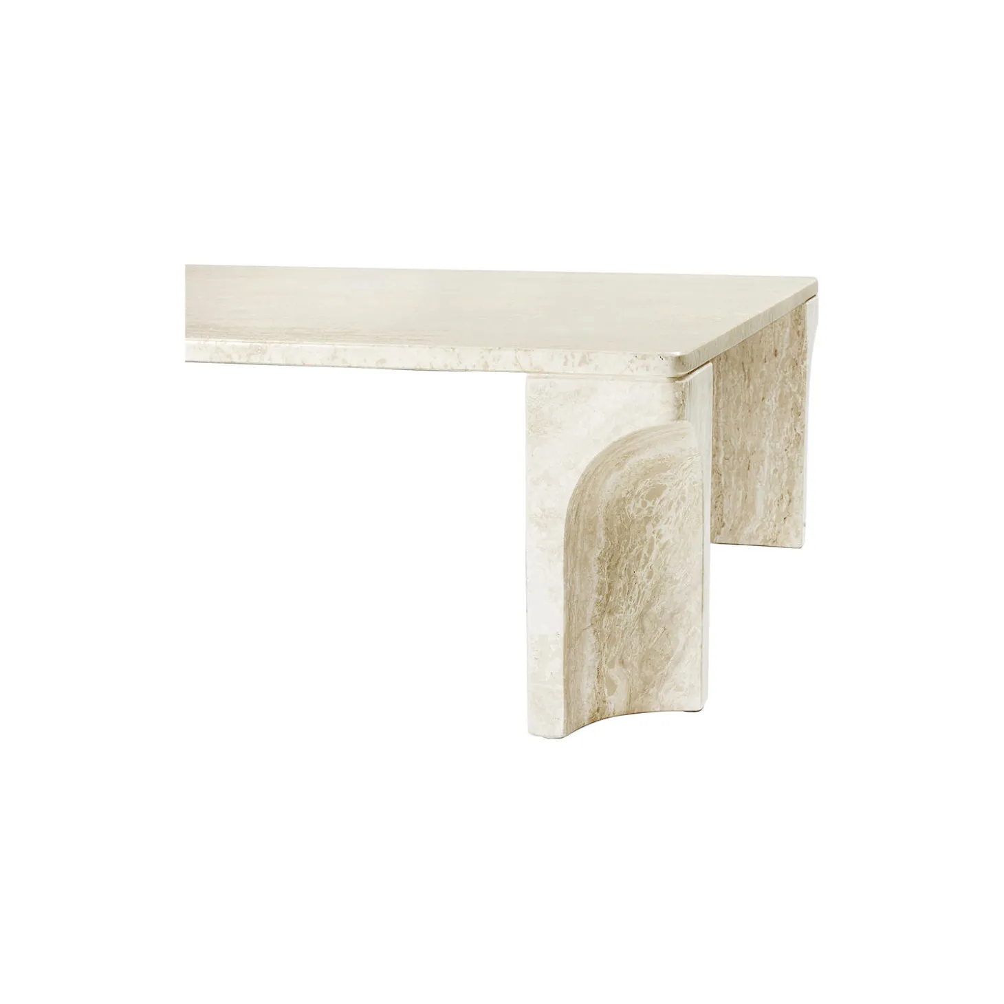 Doric Rectangular Coffee Table i travertin fra GUBI. Farve: neutral white. Mål: H: 30 x L: 140 x B: 80 cm. Design: GamFratesi.